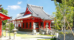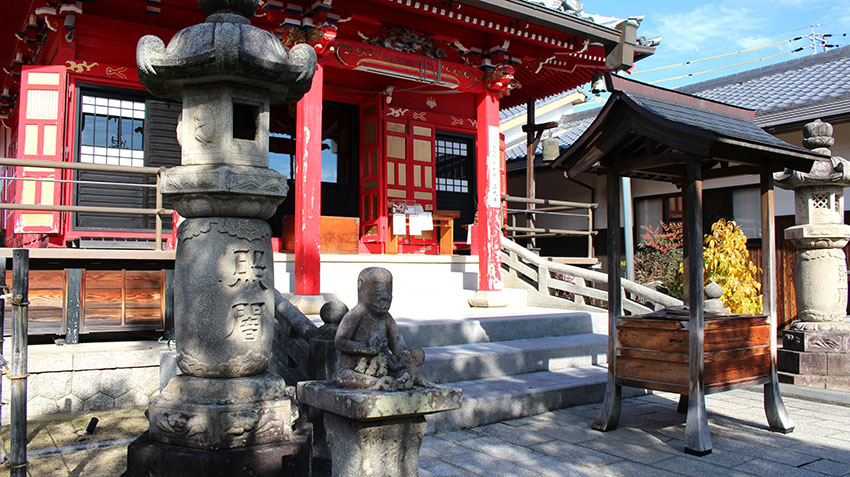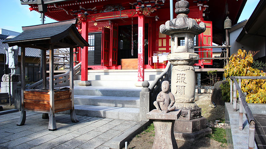- 1742年建立的本堂。特徵是塗著自古以來被視為避邪象徵的鮮豔朱紅色,持續守護著人們的平安。