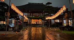 - 景觀因災害而改變,但仍保留許多佛像。舉行更衣法會,為「厄除弘法大師」更換袈裟,這是一項罕見的修行儀式。