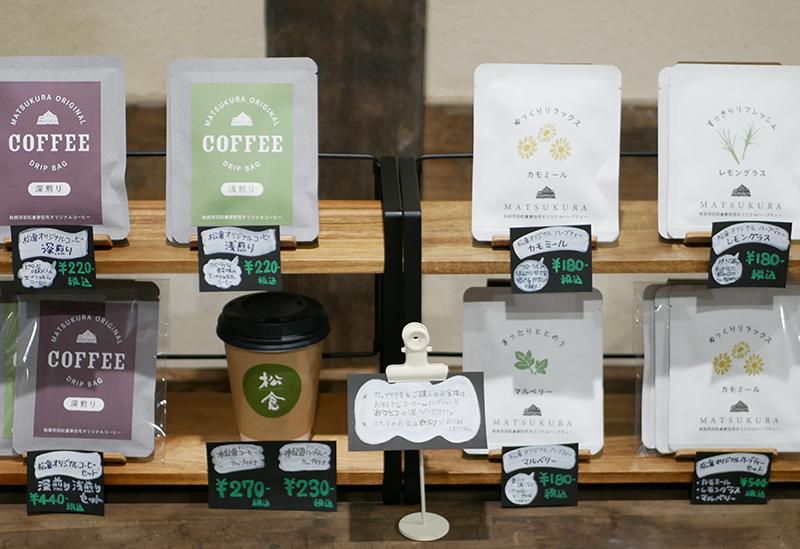 「文庫藏」販售與歷史悠久的町家與藏所營造出的氛圍相得益彰的原創咖啡與草本茶。店內也備有附杯的菜單,方便當場飲用。散步途中正好能稍作休息,盡情品味這杯濃郁的飲品。