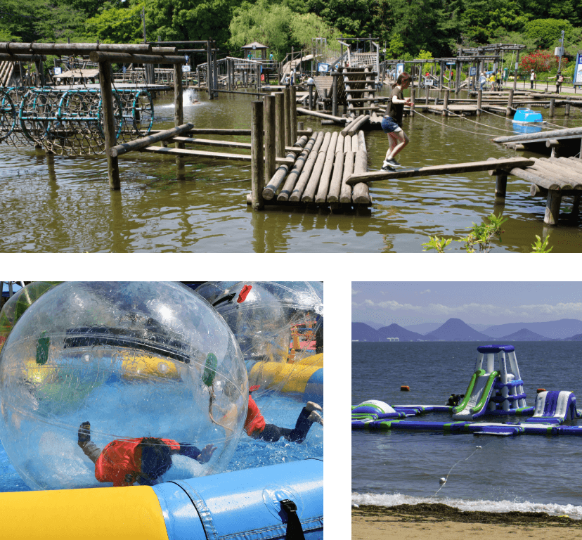 炎炎夏日裡,邊感受沁涼水域的暢快感,邊動起身體,就是水上運動冒險的樂趣所在。跌落水中或全身濕透的小插曲,也是其中的趣味之一。有些水上冒險樂園,會在海上或泳池設置大型充氣遊具,讓遊客穿著泳衣盡情玩樂,還能同時享受戲水的快感。由於是充氣設施,就算摔倒也不用擔心受傷,可以徹底盡興、全身濕透,非常推薦給想要大肆揮灑體力的人。