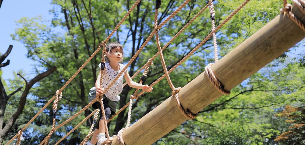 在運動冒險設施裡,渡過繩索、踩著圓木前行、登上高處……這些在日常生活中難得感受到的驚險與刺激,正是它受歡迎的原因之一。彷彿進入冒險世界般,一邊享受緊張感,一邊獲得巨大的成就感。