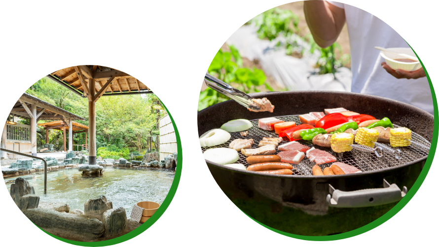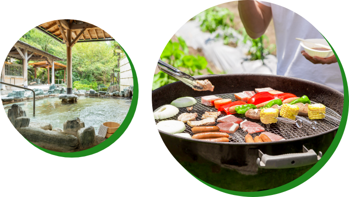 不只有運動冒險樂園本身,還有結合 BBQ、露營區、當日來回泡湯等設施的地方。動完全身之後,可以大快朵頤 BBQ,再到溫泉裡洗去汗水、清爽放鬆……就能從早到晚盡情享受戶外樂趣。