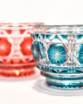 源自江戶時代末期的東京傳統玻璃工藝「江戶切子」。透過精緻切割,在玻璃表面雕出細膩紋樣,當光線灑落時,折射出的閃耀光芒格外迷人。