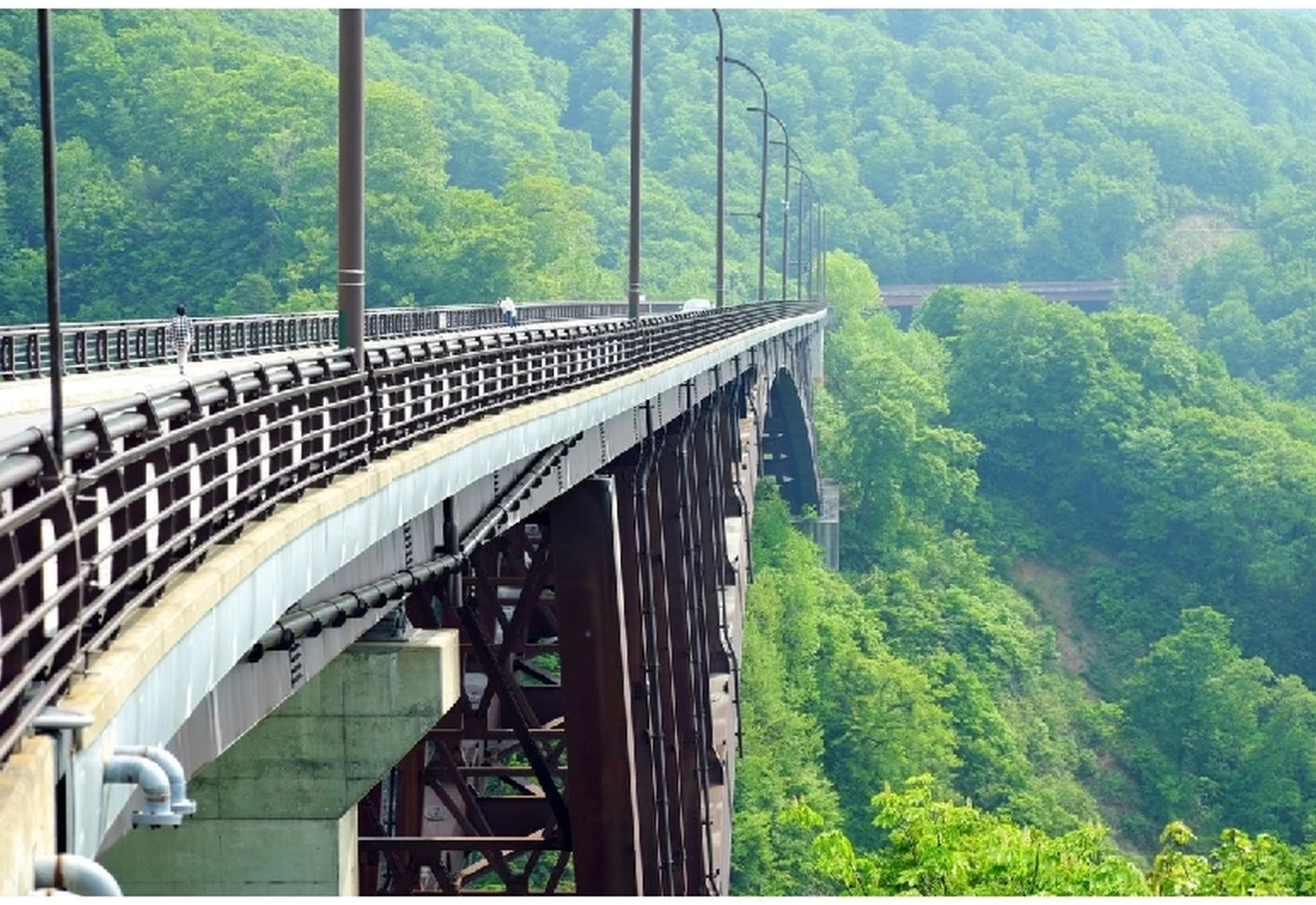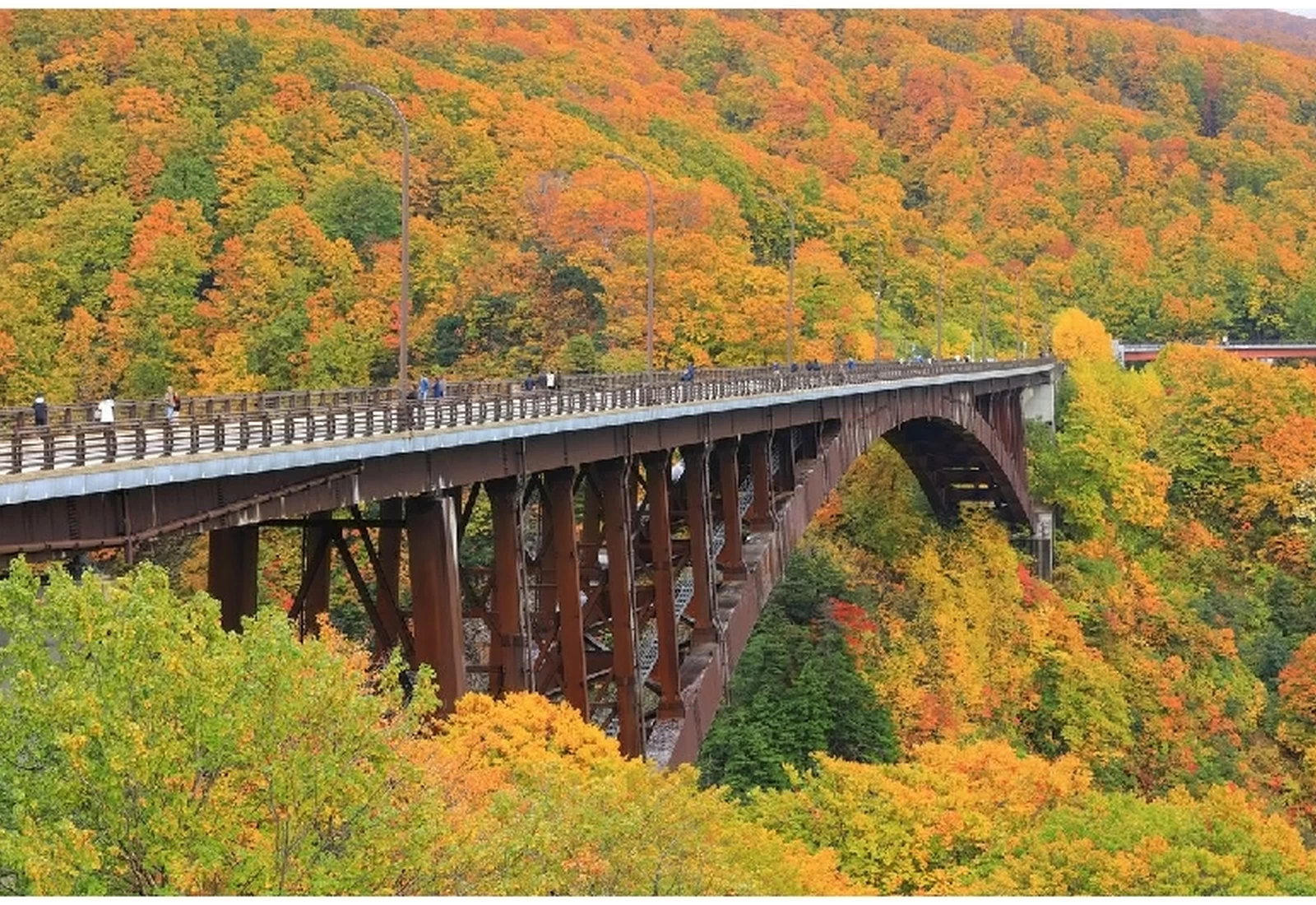 「城ヶ倉大橋」全長約360公尺,是日本數一數二長的上路式拱橋。從橋上可一覽八甲田山群與青森市區的遼闊景色。橋下延伸著豐富的山林自然,無論是夏季的新綠、冬季的雪景,或是秋季的楓紅,都能感受到四季分明的變化。每年10月中旬為紅葉最盛期,整座山谷被染成紅金交織的錦色,壯闊的景觀令人屏息,是絕對值得一遊的賞楓名所。
