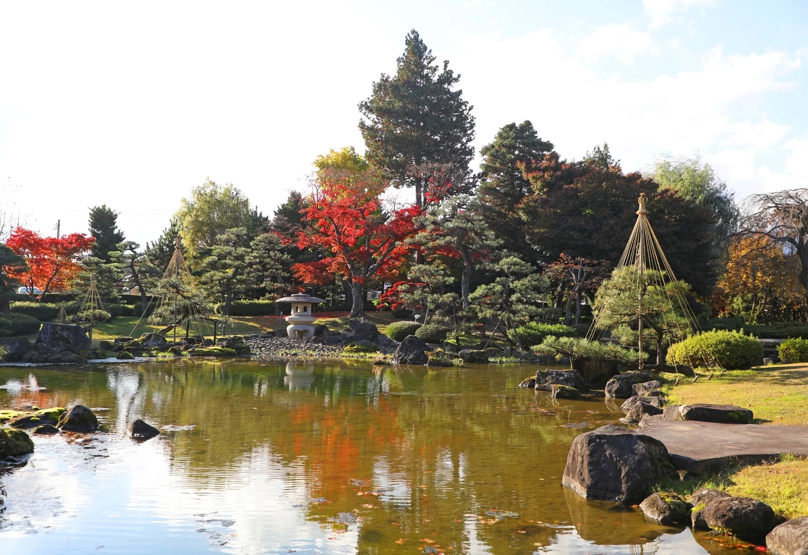 「藤田紀念庭園」是由日本商工會議所首任會頭——藤田謙一為建造私邸而設計的庭園,占地約 6,600 坪,是東北地區規模最大的日本庭園之一。園內以巧妙的高低起伏與流水設計,呈現出四季分明的自然美。每年 11 月上旬至中旬,園中楓樹、櫸樹、銀杏等樹木紛紛染上紅橙黃三色,如同打翻的秋色調色盤。漫步其間,能感受到靜謐又優雅的日式風情,是秋季到弘前時絕對不能錯過的賞楓名所。