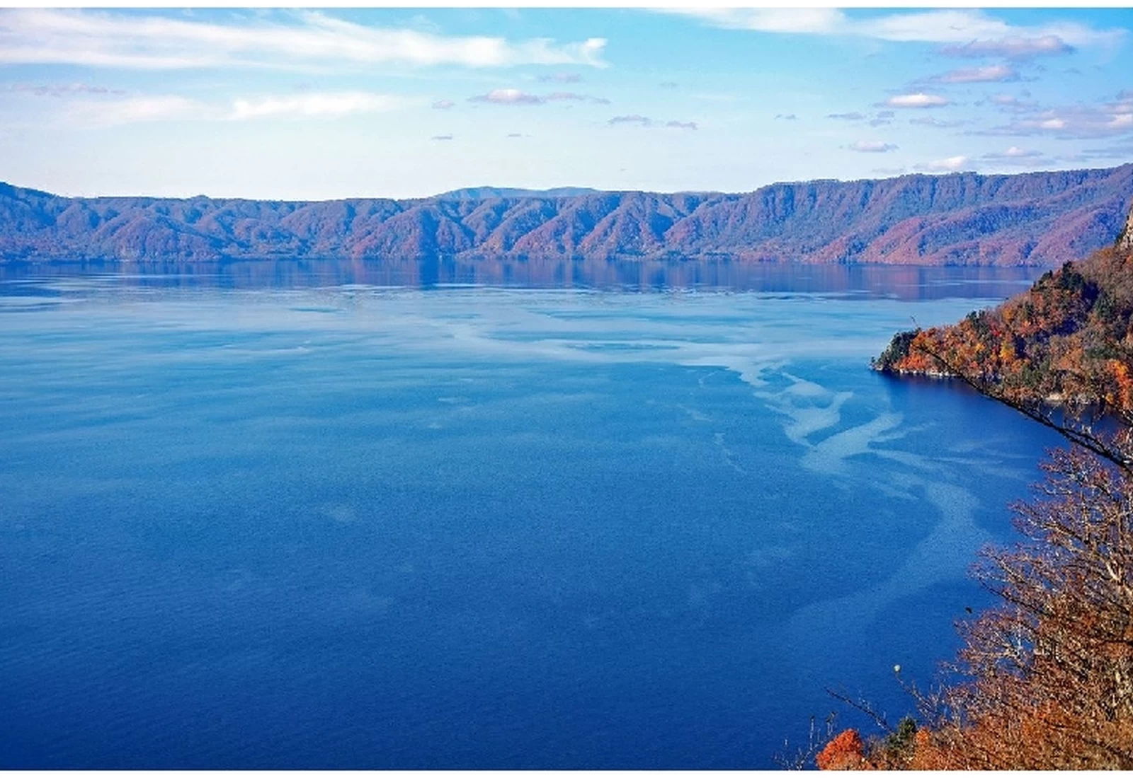 「十和田湖」被列為日本的國家特別名勝與天然紀念物,是國內著名的深湖之一。約 20 萬年前的火山活動形成了壯麗的火口湖,雨水積聚其中,孕育出這座充滿靈氣的湖泊。湖面如鏡,四季變幻的自然風光與湛藍天空交織成詩。每年 10 月下旬迎來紅葉最美的時期,湖畔的樹林化作一片紅與金的海洋,倒映在靜謐的湖面上,宛如一幅會呼吸的風景畫。
