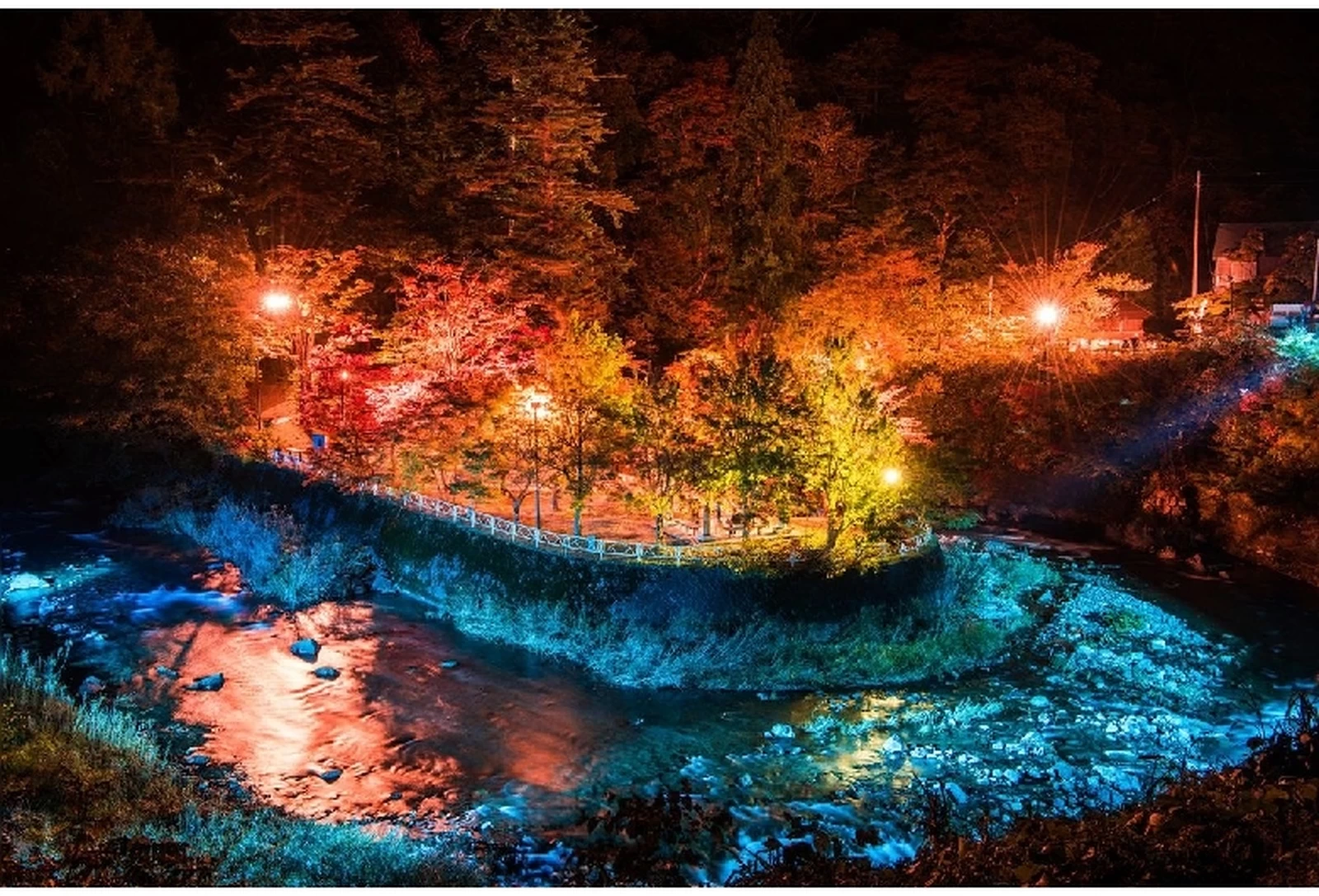 「川內川溪谷」是一處充滿自然魅力的秘境,沿途可欣賞瀑布、吊橋與原始森林交織而成的壯麗景色。全長約 4 公里的步道維護完善,慢慢漫步約 2 小時即可環遊一圈。每年 10 月中旬至下旬為紅葉最美時節,滿山樹木染成紅、橙、金黃等層層色彩,映照在清澈溪流之上,景色夢幻。這裡不僅能賞楓,還能感受滿滿的負離子氣息,是秋季想親近自然、放鬆身心的絕佳去處。
