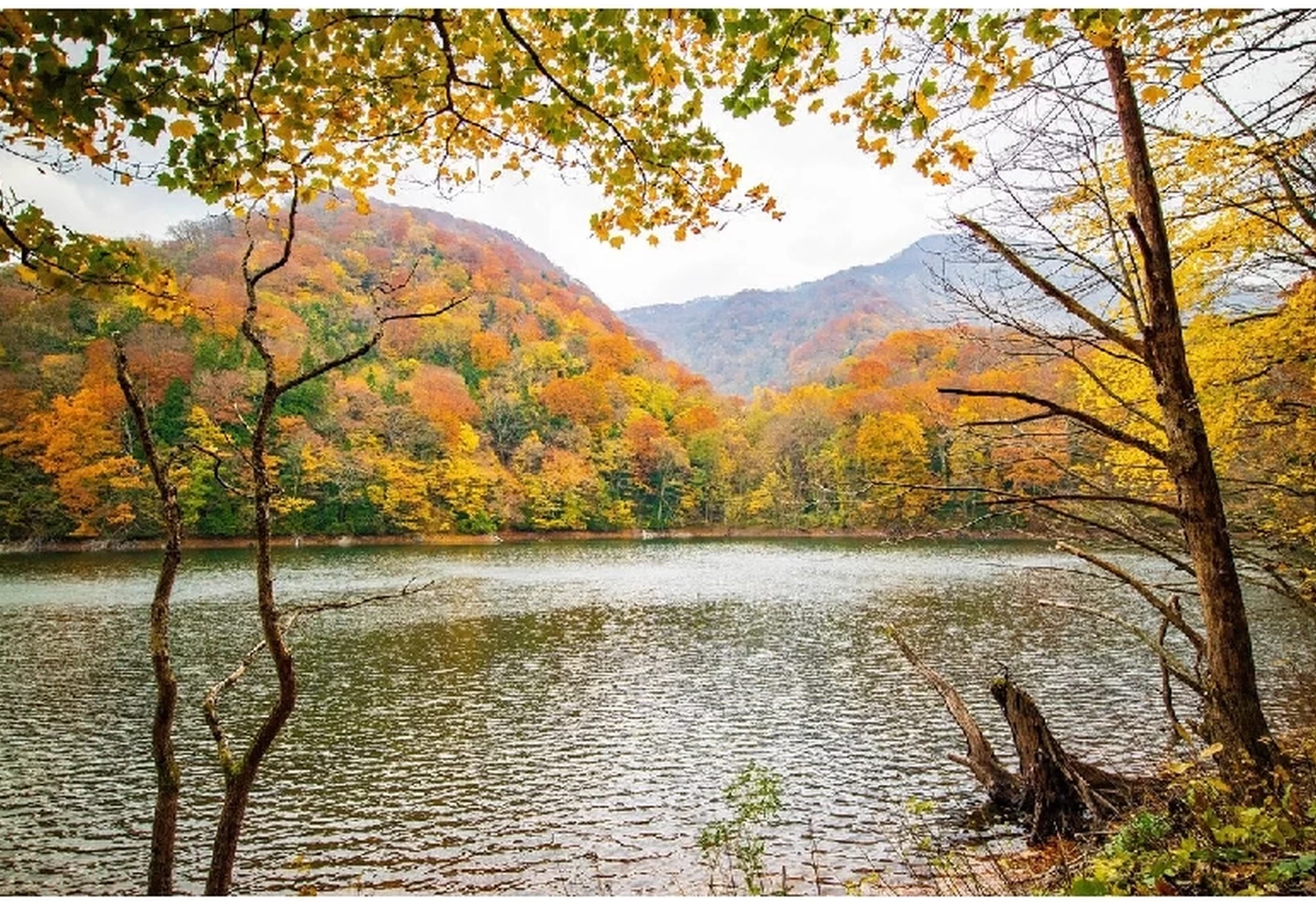 「蔦七沼」位於赤倉岳山腳,是因火山爆裂而形成的七個湖泊的總稱,包括蔦沼、鏡沼、月沼、長沼、菅沼、瓢箪沼與赤沼。每年 10 月中旬至下旬迎來楓紅最美的季節,其中以「蔦沼」最為著名,湖面如鏡,倒映著滿山的紅與金。除了赤沼外,其餘六個湖泊之間設有約 3 公里的步道,慢行約 80 分鐘即可環湖一圈。走在原始的山毛櫸林間,伴隨鳥鳴與落葉的聲音,是一次能沉澱心靈的秋日散策體驗。
