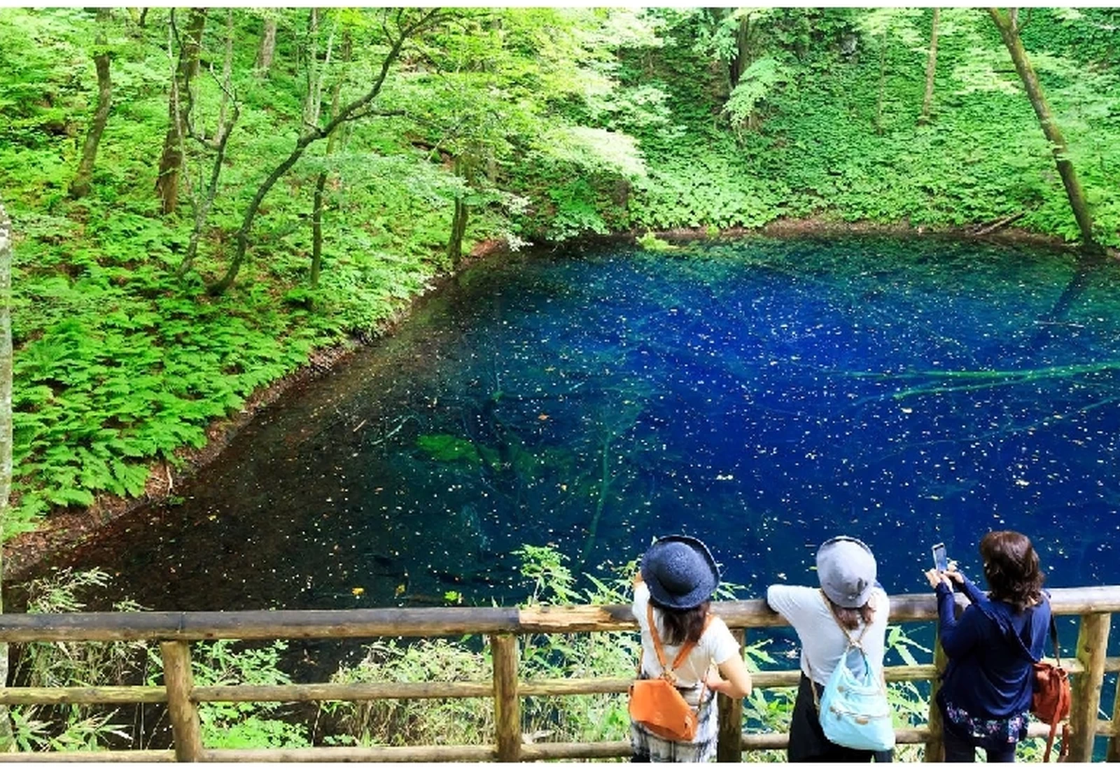 位於白神山地西部、津輕國定公園內的「十二湖」,其實由 33 座大小不一的湖泊所構成。據說在 1704 年的大地震中,因山體崩塌而形成。眾多湖泊之中,最著名的莫過於散發著神秘鈷藍色光澤的「青池」,湖面清澈見底,宛如寶石。沿著整修完善的步道散步,到了 10 月下旬紅葉最盛時,水面倒映著火紅與金黃的樹影,彷彿走入童話般的絕景世界。