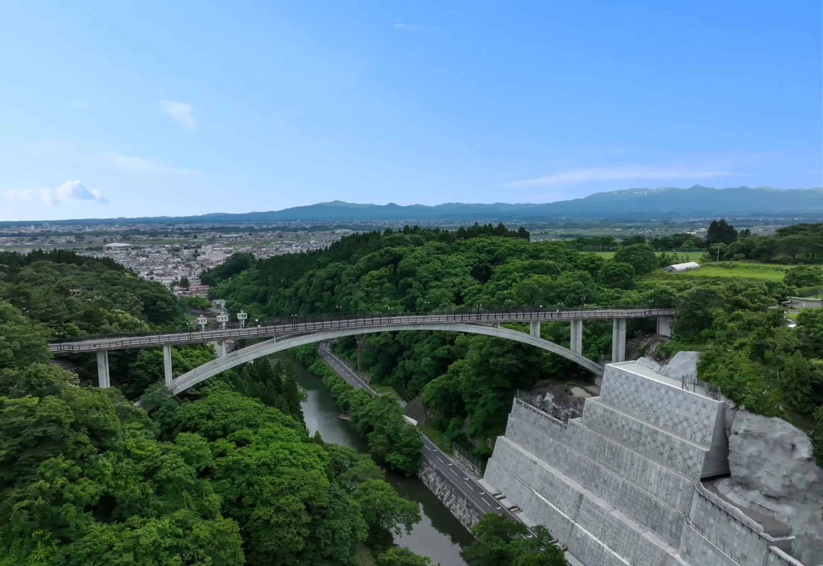 站在橋上,可將市街風景與燒石連峰的群山一覽無遺,視野遼闊又舒心。周邊還散布著包括歷史公園江刺藤原之鄉在內的多處觀光景點,十分適合一併安排順遊。※每年12月至3月期間為車輛禁止通行,造訪時請特別留意。