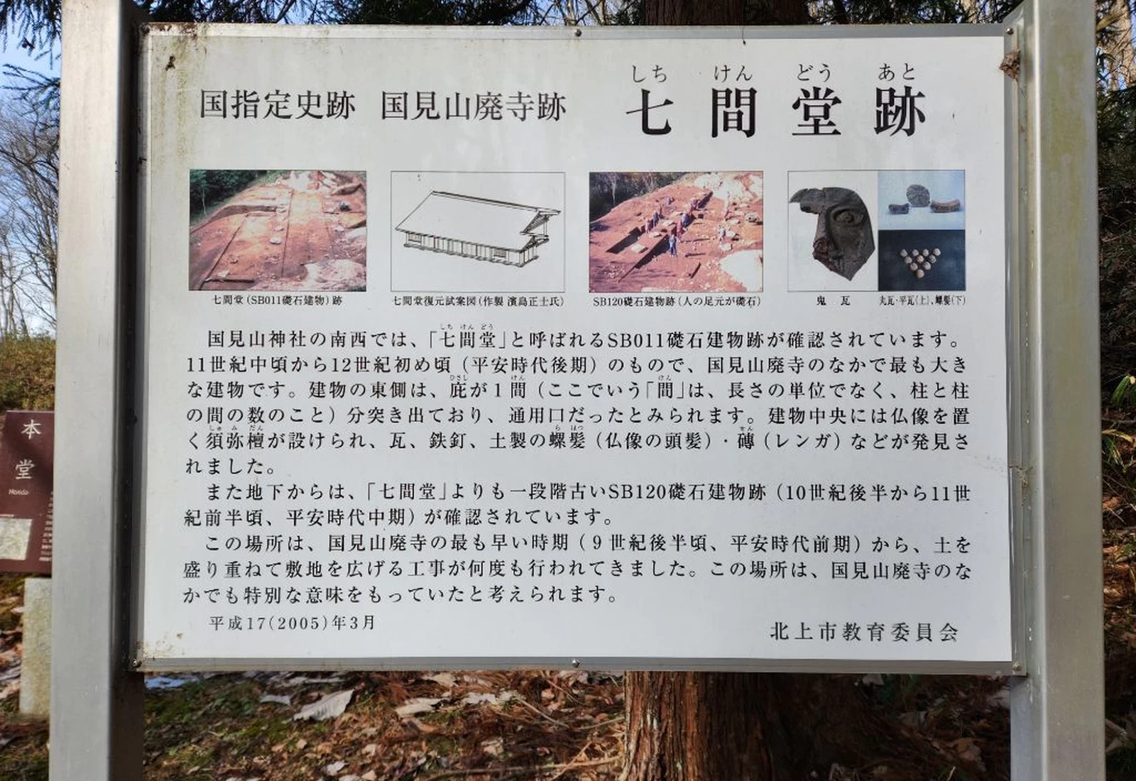 興盛於約一千多年前、平安時代中期的山岳寺院——「國指定史跡 國見山廢寺遺址」。經由考古發掘,發現了包含七間堂、塔跡在內共10棟建築的礎石遺構,顯示此地在平泉中尊寺建立之前,曾是一座相當興盛的大規模寺院。