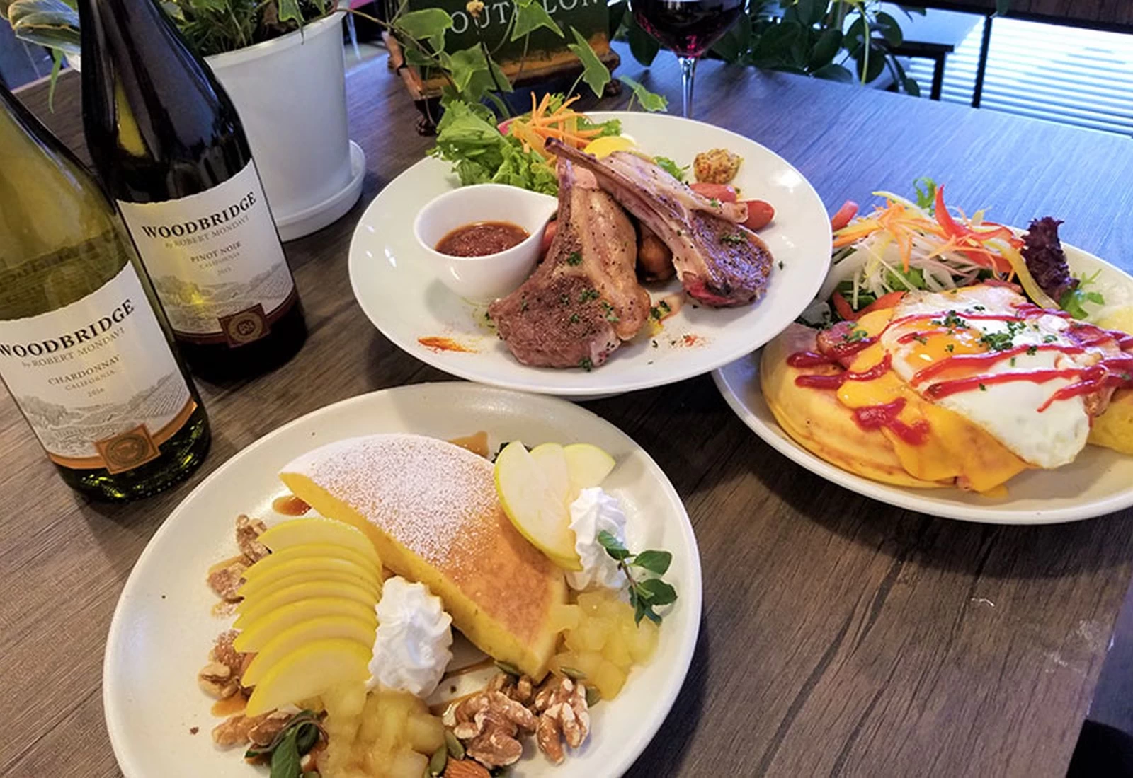 深受各年齡層在地居民喜愛的「Camellia Lounge」,是一間充滿衝浪風格、氛圍輕鬆又時尚的餐酒咖啡館。使用岩手縣產雞蛋、牛奶、小麥與當季水果製作的「季節限定鬆餅」,口感蓬鬆、風味自然,是店內的人氣招牌。
