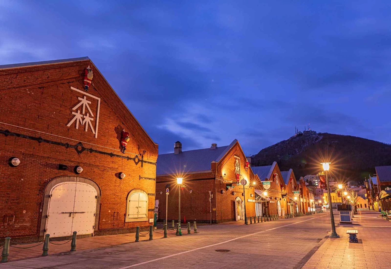 充滿懷舊氣息的灣岸地區中,最具代表性的存在便是「金森紅磚倉庫」。這裡於明治末期建成,是函館首座以收取保管費為目的的營業用倉庫。如今共有 7 棟建築,活化為集結購物商場、餐廳與多功能展演空間的商業設施。沿著海邊悠閒散步、尋找伴手禮,或是大啖函館在地美食,各種玩法都能隨心所欲。這裡也是知名的拍照景點,而最推薦的時段正是黃昏時分——紅磚倉庫在橘色燈光的映照下緩緩亮起,整個區域被溫暖柔和的氛圍所包圍,格外迷人。