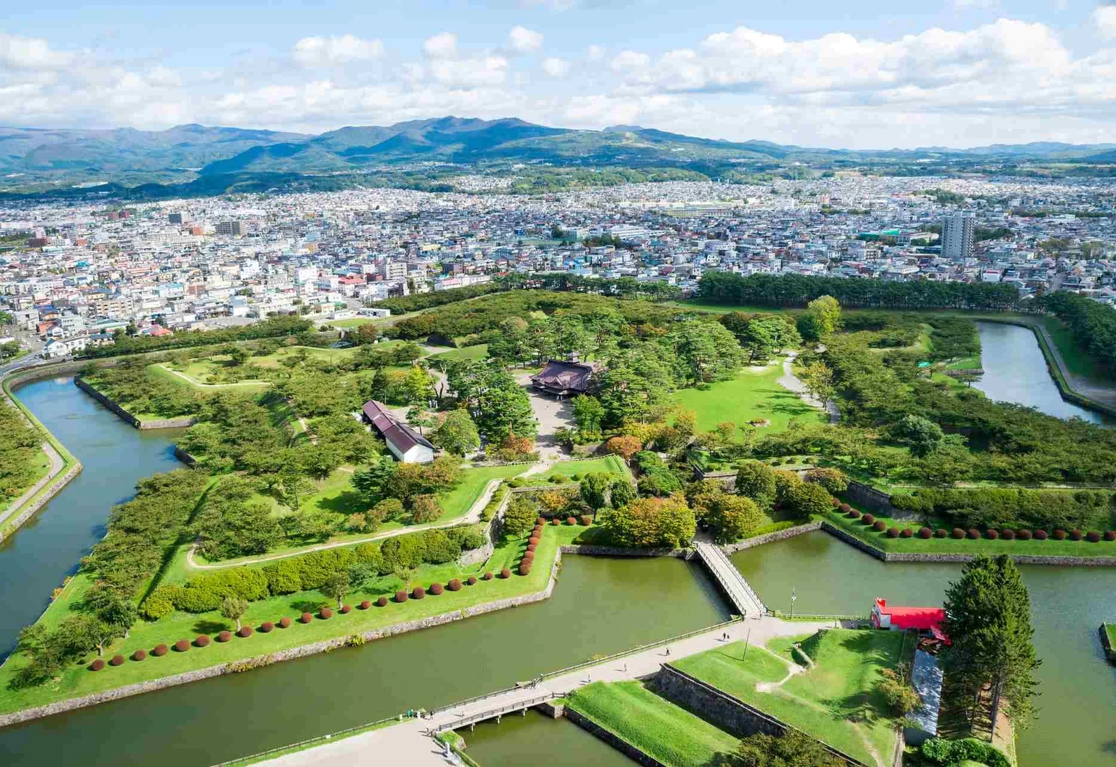 將五角形星狀城郭「五稜郭跡」加以整備而成的公園,也是遠近馳名的賞櫻名所。曾是箱館戰爭舞台的五稜郭,為了北方防禦而參考歐洲城塞建造,是日本第一座星形要塞。據說由蘭學者武田斐三郎僅憑一本荷蘭築城書完成,背景故事同樣引人入勝。