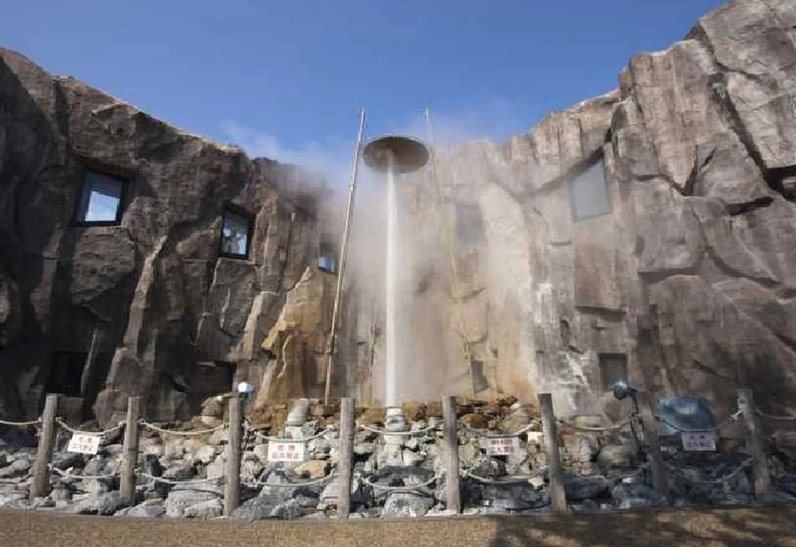 園內最吸睛的亮點,是約每 10 分鐘就會噴發一次、高達 15 公尺、溫度約 100 度的溫泉間歇泉。這種會以固定週期噴湧而出的溫泉在日本國內也相當罕見,因此吸引不少遊客特地前來一睹奇景。