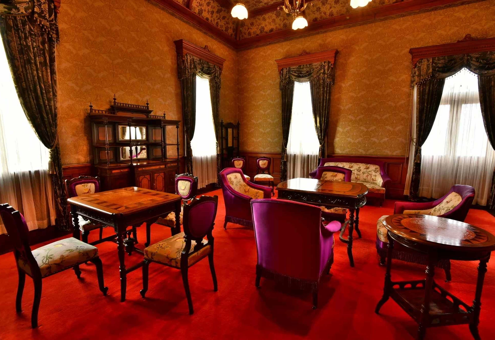 這棟曾作為歷代天皇下榻與休憩之所的建築,內部瀰漫著高雅氣息,展示著華麗的家具與裝飾品,讓人深刻感受到明治時代的摩登風情。參觀完各個房間後,別忘了走上二樓陽台,將眼前的壯麗景色一併收入眼底。