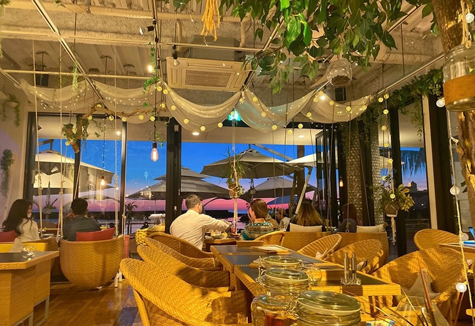 早午餐時段提供蒜香蝦、牛排等份量十足的套餐,搭配吸睛的擺盤設計,成為在 SNS 上備受矚目的話題美食。每逢週六夜晚,還能一邊欣賞煙火、一邊度過浪漫時光,為約會增添難忘的回憶。