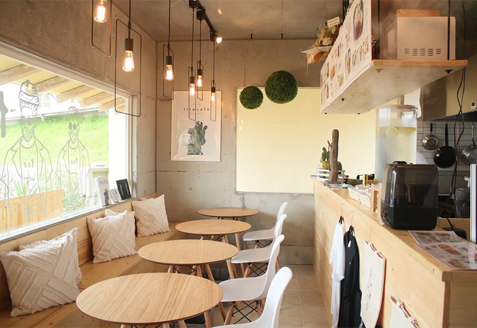「trip cafe okinawa」以「希望每一位走進咖啡廳的人,都能露出放鬆笑容」為理念,是一間充滿溫度的療癒系咖啡館。店內提供多樣化餐點,包含使用椰子與沖繩產紅芋製作的鬆餅等甜點,選擇相當豐富。