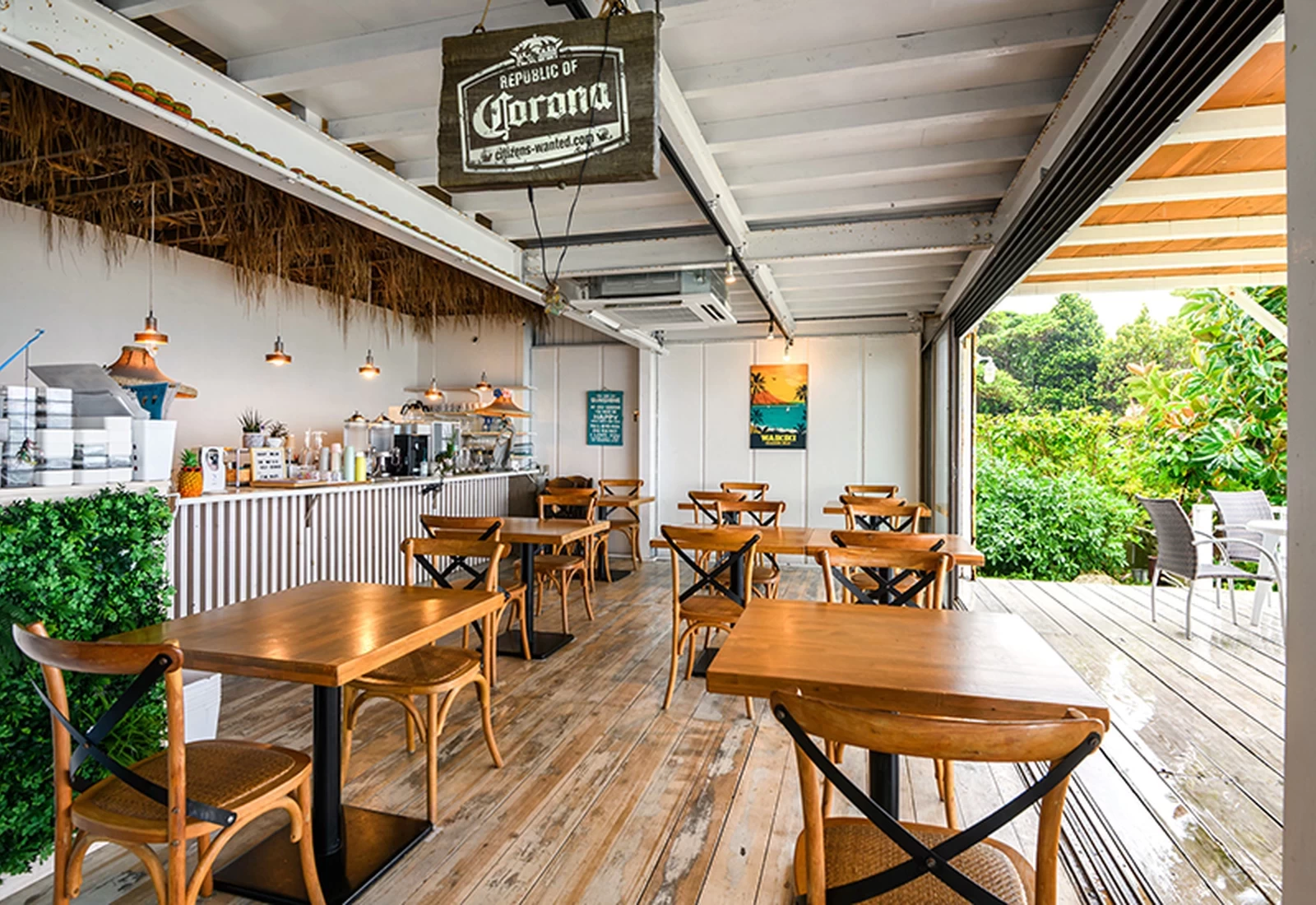 「WaGyu-Cafe KAPUKA」位於臨海的複合式商業設施內,是一間能盡情感受南國度假氛圍的咖啡餐廳。擁有海景視野的店內空間,設有沙發座位、愛心造型椅與吊椅等,處處充滿拍照亮點。