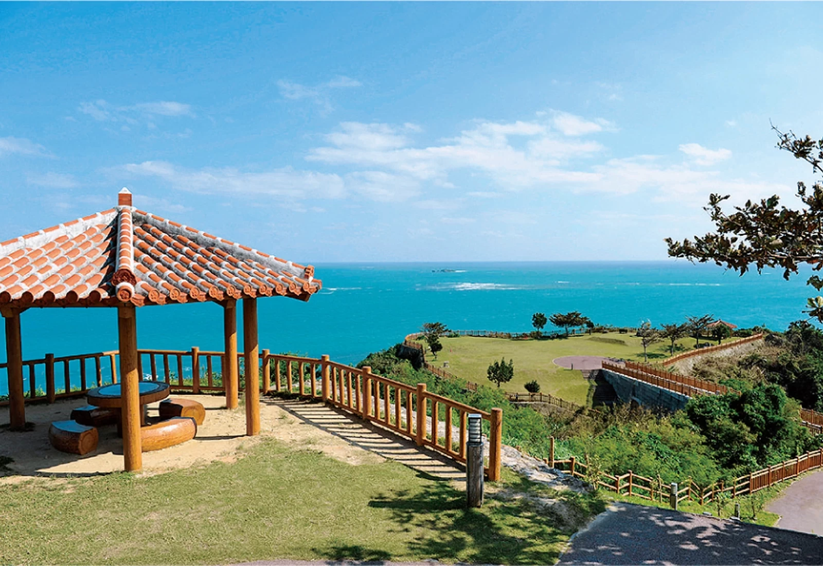 園區內步道完善,迎著海風悠閒散步格外愜意;也推薦在充滿沖繩風情的紅瓦涼亭裡坐下歇息,靜靜感受海與天空交會的片刻。作為自駕途中的小休憩站,這裡最適合放慢節奏,讓身心在自然中重新充電。