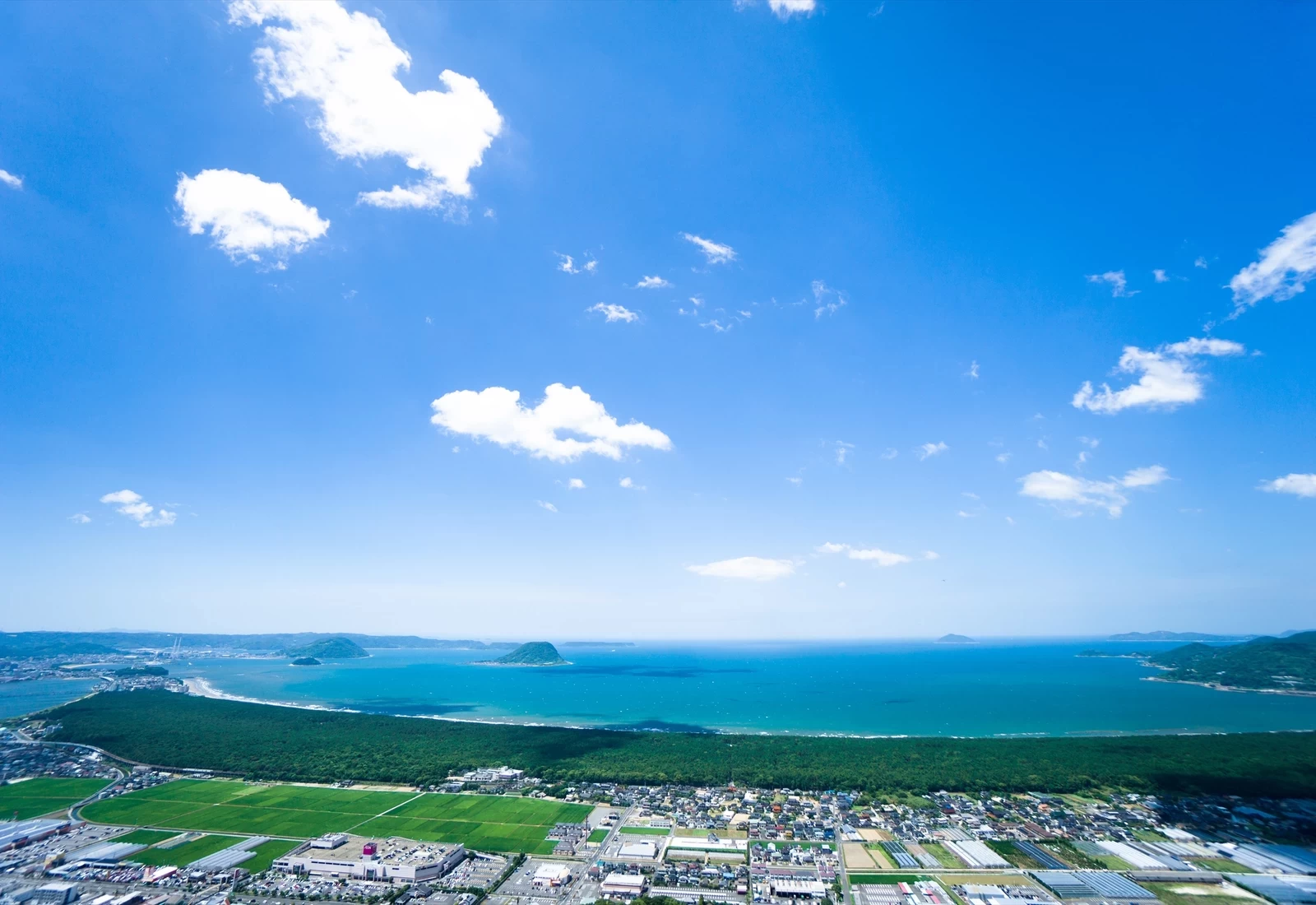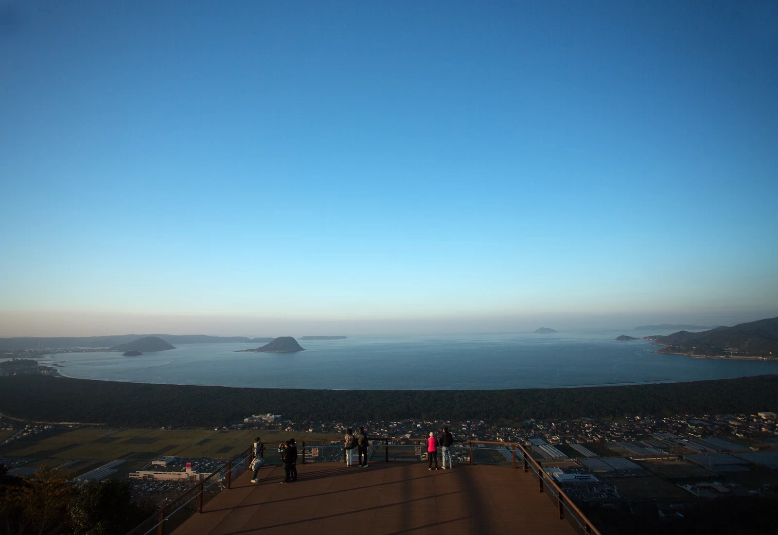 登上山頂展望台,唐津市街映入眼簾,放眼望去還能一覽被列為日本三大松原之一的虹之松原,以及遼闊的唐津灣。其中,虹之松原的景色尤為動人,層層松林與海岸線交織出的風景,讓人忍不住駐足良久。