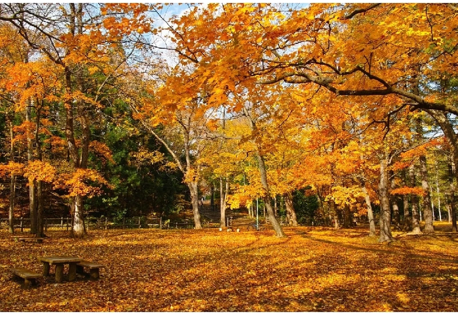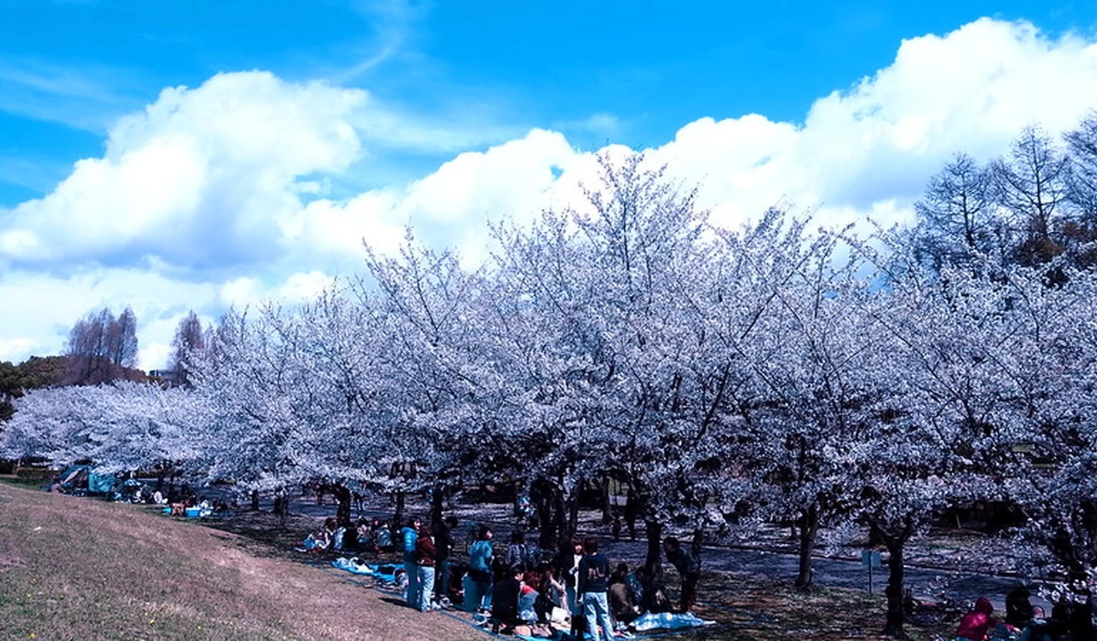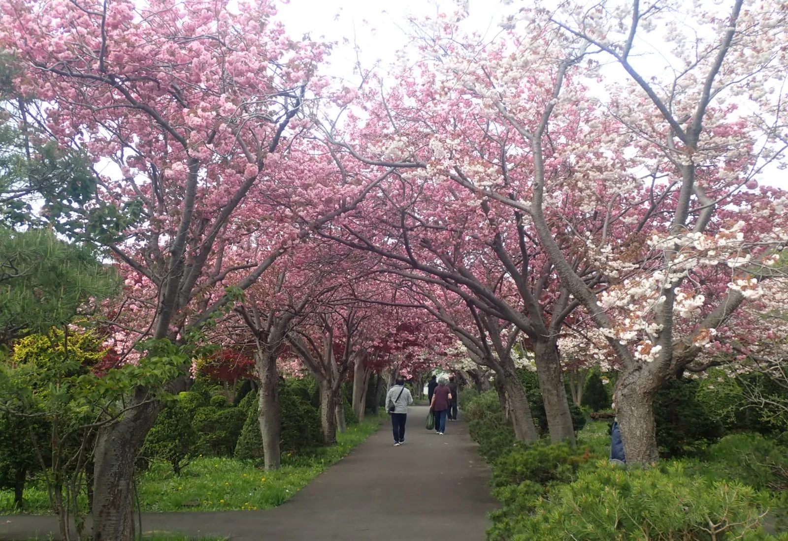 作為賞櫻名所,園內栽種了染井吉野櫻、蝦夷山櫻等共9種櫻花品種,花期接力綻放,能長時間享受賞櫻樂趣。尤其是草坪廣場上的八重櫻櫻花並木,盛開時格外壯觀,許多人會鋪上野餐墊,一邊野餐一邊賞花,氣氛輕鬆愜意。