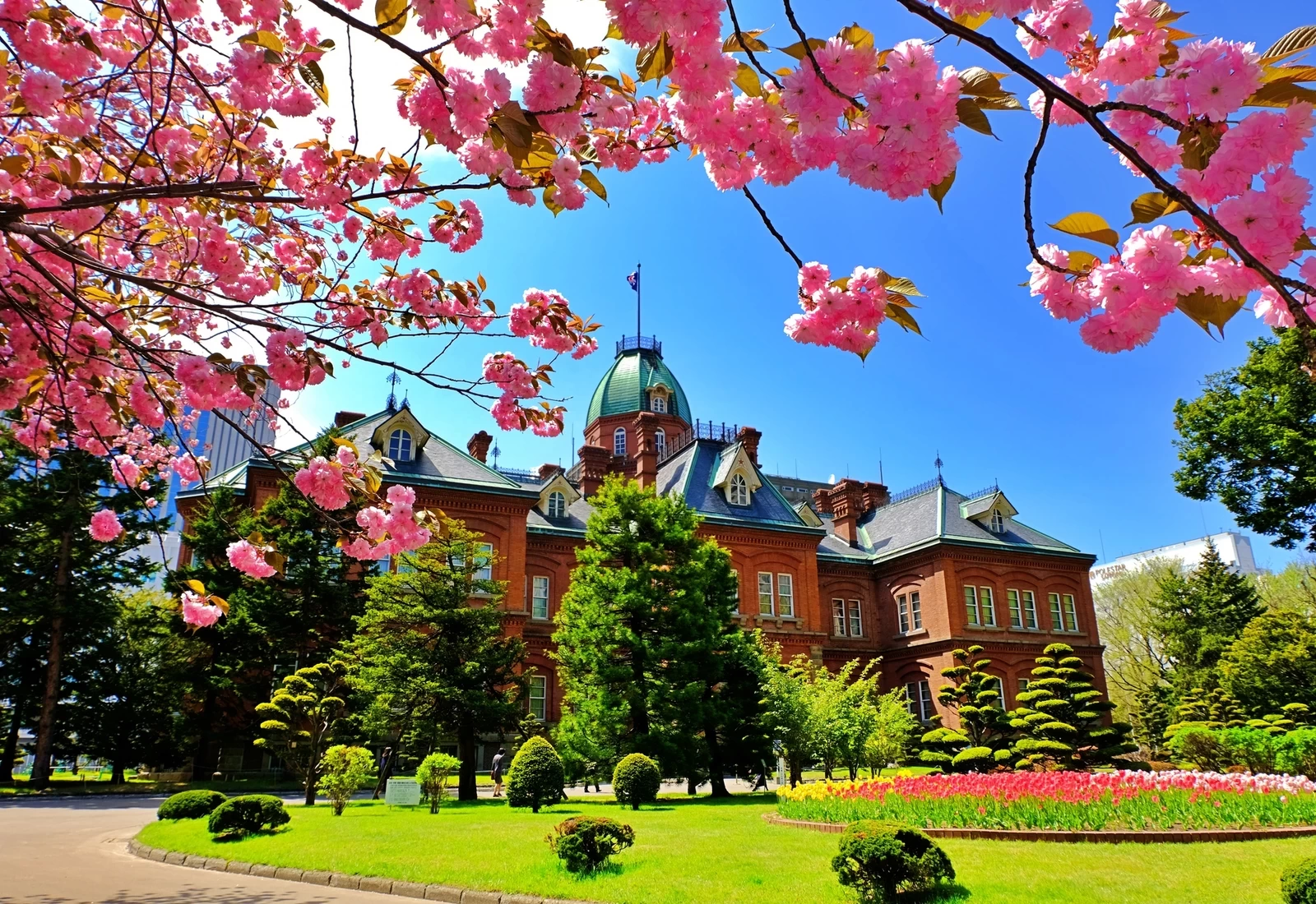北海道廳舊本廳舍(紅磚廳舍)建於1888年,是札幌極具代表性的觀光地標。其前庭同時也是札幌知名的賞櫻景點,園內種植了早開的蝦夷山櫻與晚開的八重櫻,因此能在不同時期欣賞到兩次櫻花盛開的景致,這正是此地的一大特色。