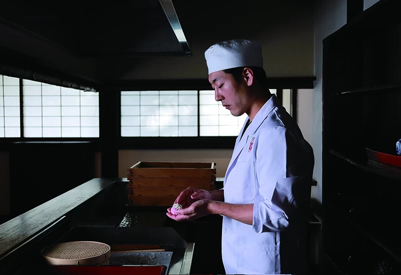位於滋賀縣大津市的總公司「叶 匠壽庵」,從 JR 石山站開車約 30 分鐘即可到達。總公司除了工廠之外,還設有菓子販售區、茶室、餐飲與甜點店以及麵包坊,遊客可以一邊購買伴手禮,一邊欣賞風光明媚的景色,享用餐點或品茶。其代表銘菓 「あも」(1,296 日圓)以細緻柔滑的漉餡搭配濕潤柔軟的羽二重餅,口感極佳。包裝隨四季變化,增添了不少魅力,是作為滋賀伴手禮非常受歡迎的逸品。