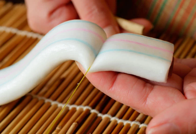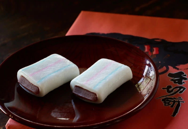 這款名物糸切餅使用純米粉製作餅皮,包裹自家製的漉餡,再拉長後用細線仔細切開。價格為 10 個 850 日圓、15 個 1,200 日圓、20 個 1,500 日圓,是多賀大社參拜後作為伴手禮的理想選擇。