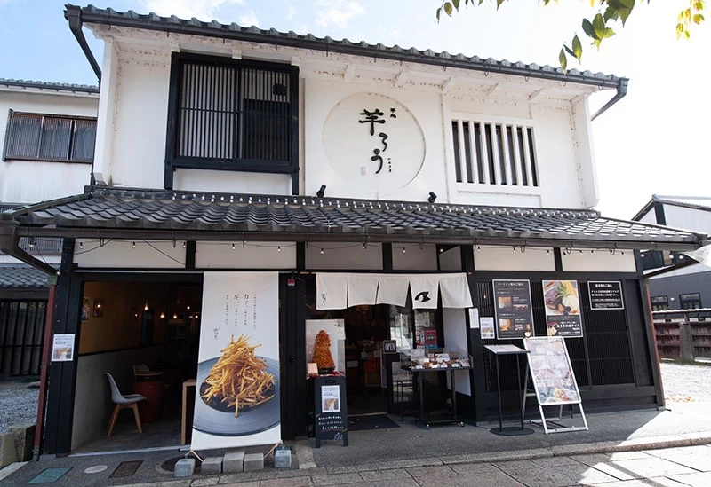 位於 JR 彦根站開車約 20 分鐘、「夢京橋キャッスルロード」町屋林立的一角的 「芋処 芋ろう」,是一家以地瓜甜點聞名的店鋪。店內人氣商品包括費時慢烤的 壺烤地瓜、招牌 生蜜地瓜條(芋けんぴ),以及使用烤地瓜製作的各式甜點,如 地瓜聖代、烤地瓜布蕾、蜜地瓜牛奶 等。