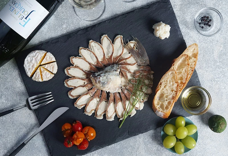 近江佃煮庵 遠久邑將在琵琶湖及沖島捕獲的新鮮湖魚,經由職人精湛技術加工而成。店內販售滋賀名物 鮒壽司、佃煮,以及特產 味付紅蒟蒻(486 日圓)、琵琶湖名產 蝦豆(475 日圓) 等商品。其中,yoshio fermented foods 鮒壽司×Tsuyako 法式起司(5,940 日圓) 將鯽魚、起司與飯巧妙結合,呈現既像鮒壽司又不同於鮒壽司、既像起司又不同於起司的新感覺,是極具特色的滋賀伴手禮。