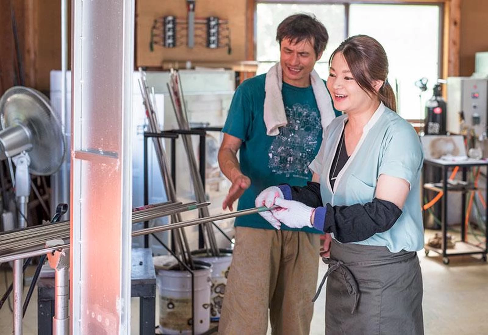在由玻璃工藝家夫妻共同經營的工房裡,不妨親手製作一件屬於自己的玻璃作品吧!這裡提供傳統的「吹製玻璃」體驗,從第一步開始都有細心指導,就算是初學者也能安心體驗。無論是玻璃杯、單枝花瓶等,都能依照自己的喜好挑選作品樣式,打造獨一無二的紀念品。