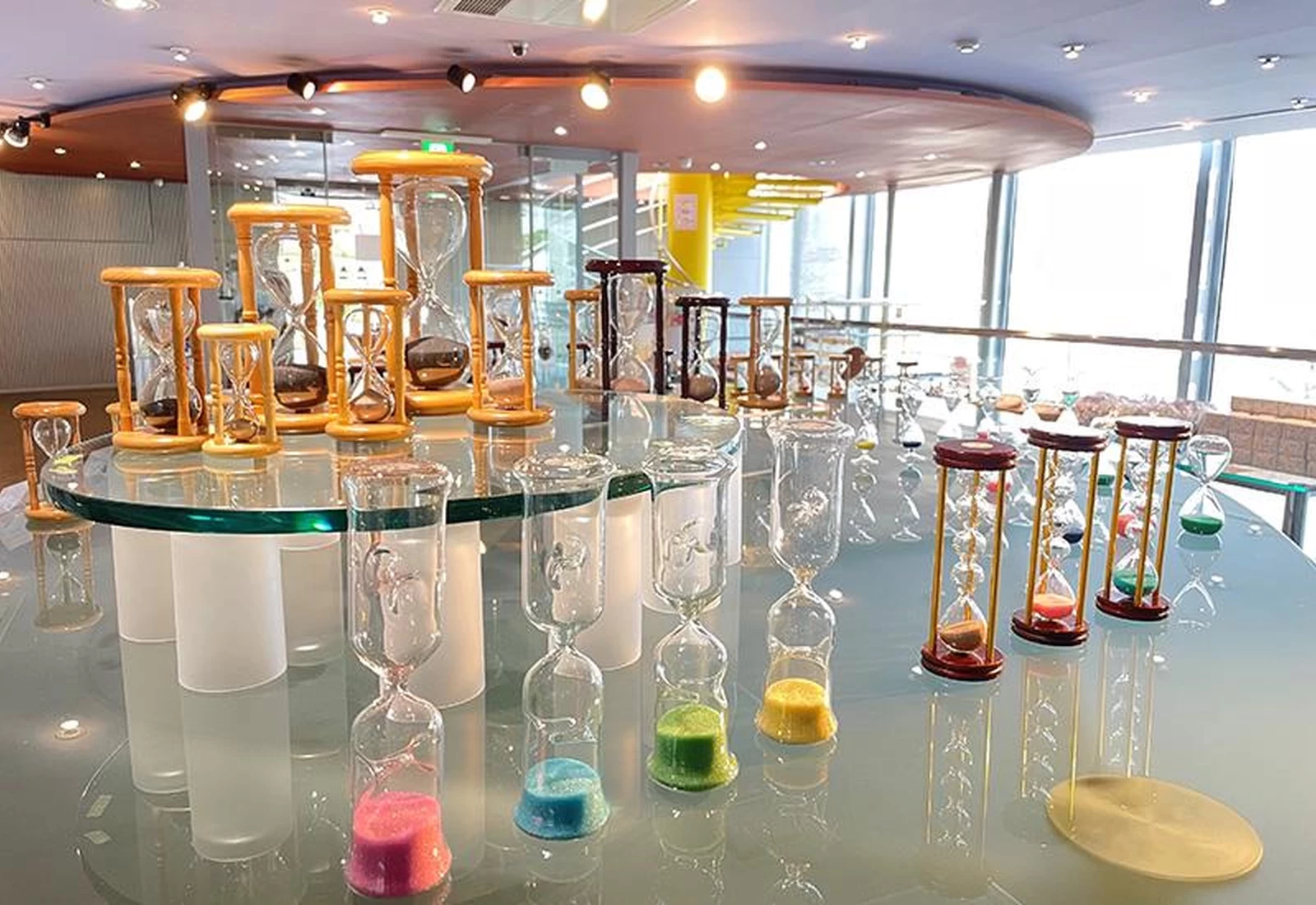 這座博物館以「砂・時間・環境」為主題,館內收藏了多件與砂相關的藝術作品,其中最具代表性的,就是世界最大級的沙漏。館內的巨型沙漏使用 1 公噸砂子,需要整整一年時間才會全部落下,靜靜望著砂流慢慢滑落,彷彿能感受到時間的重量與流動。每年跨年夜至元旦舉行的「時間祭典」中,還會進行少見的「巨大沙漏翻轉」活動,相當具有儀式感。