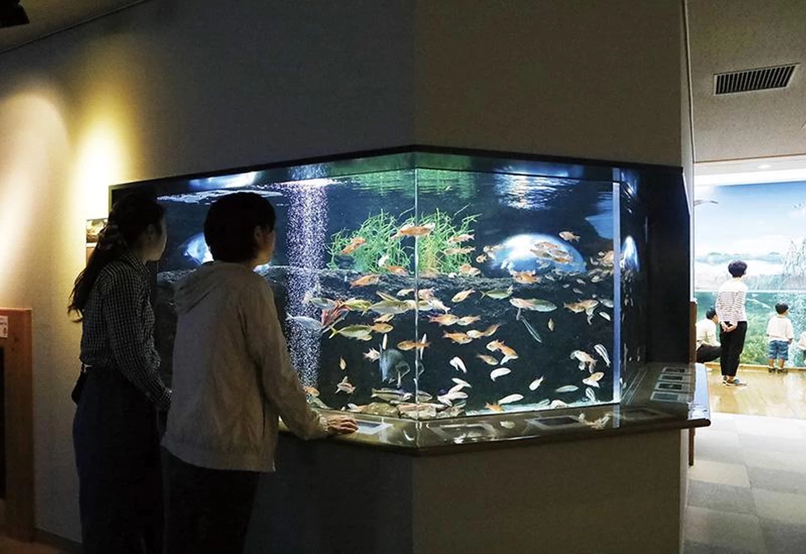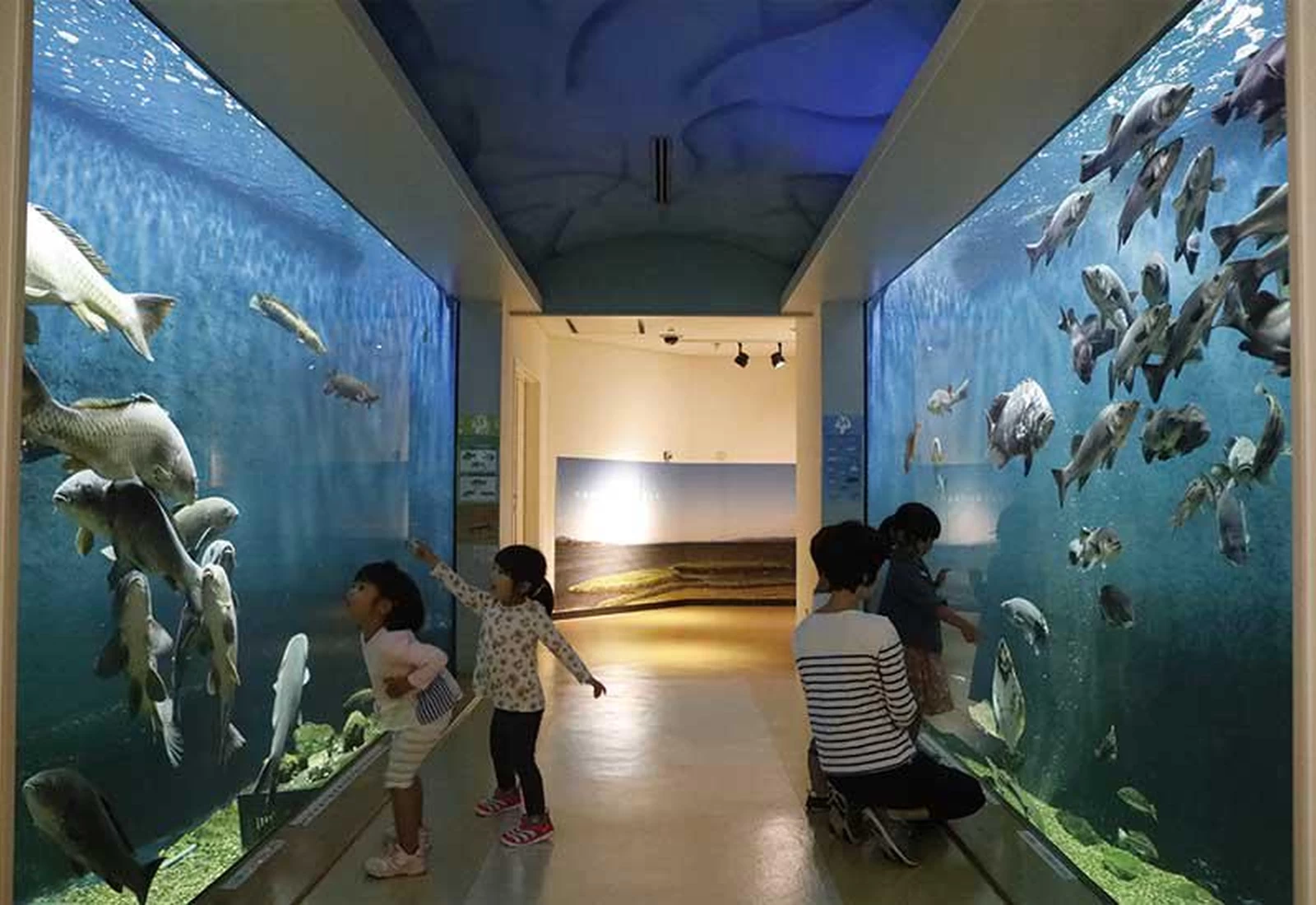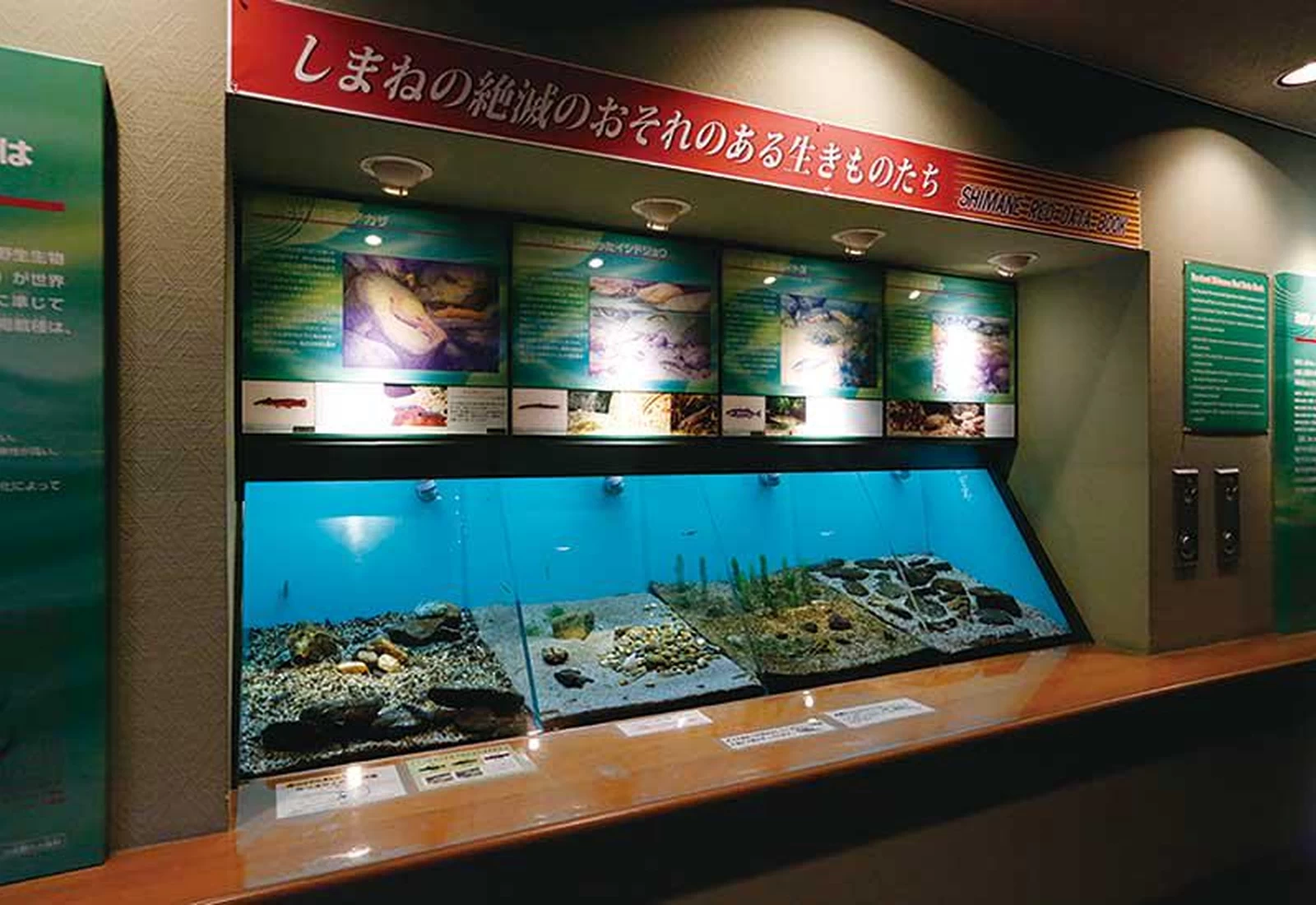 這座水族館集結了島根縣河川及宍道湖中生活的水域生物,館內展示約 200 種生物,甚至還設有介紹瀕臨絕種物種的專區,引導人們思考人類與自然如何共存。館內最吸睛的「河川地形水槽」長達 18 公尺,完整重現從河川上游到下游的環境,可以近距離觀察魚兒在自然狀態中自在悠游的模樣。