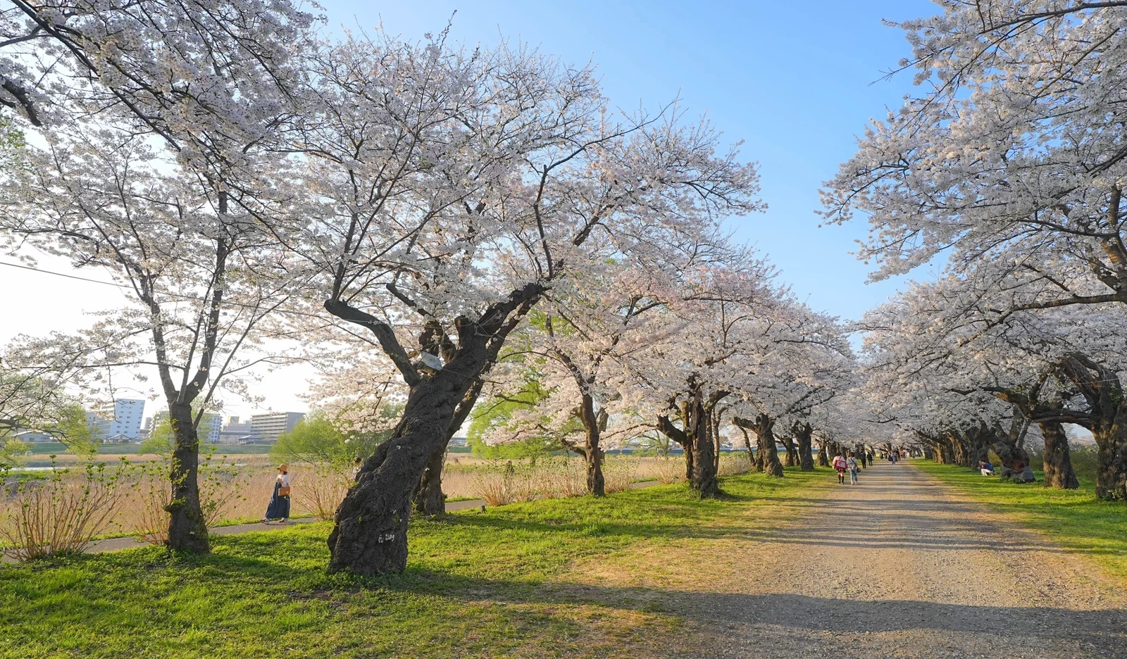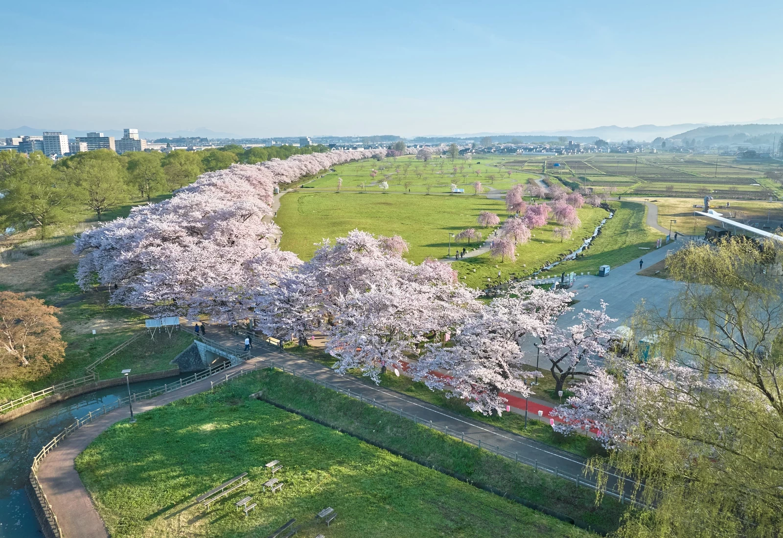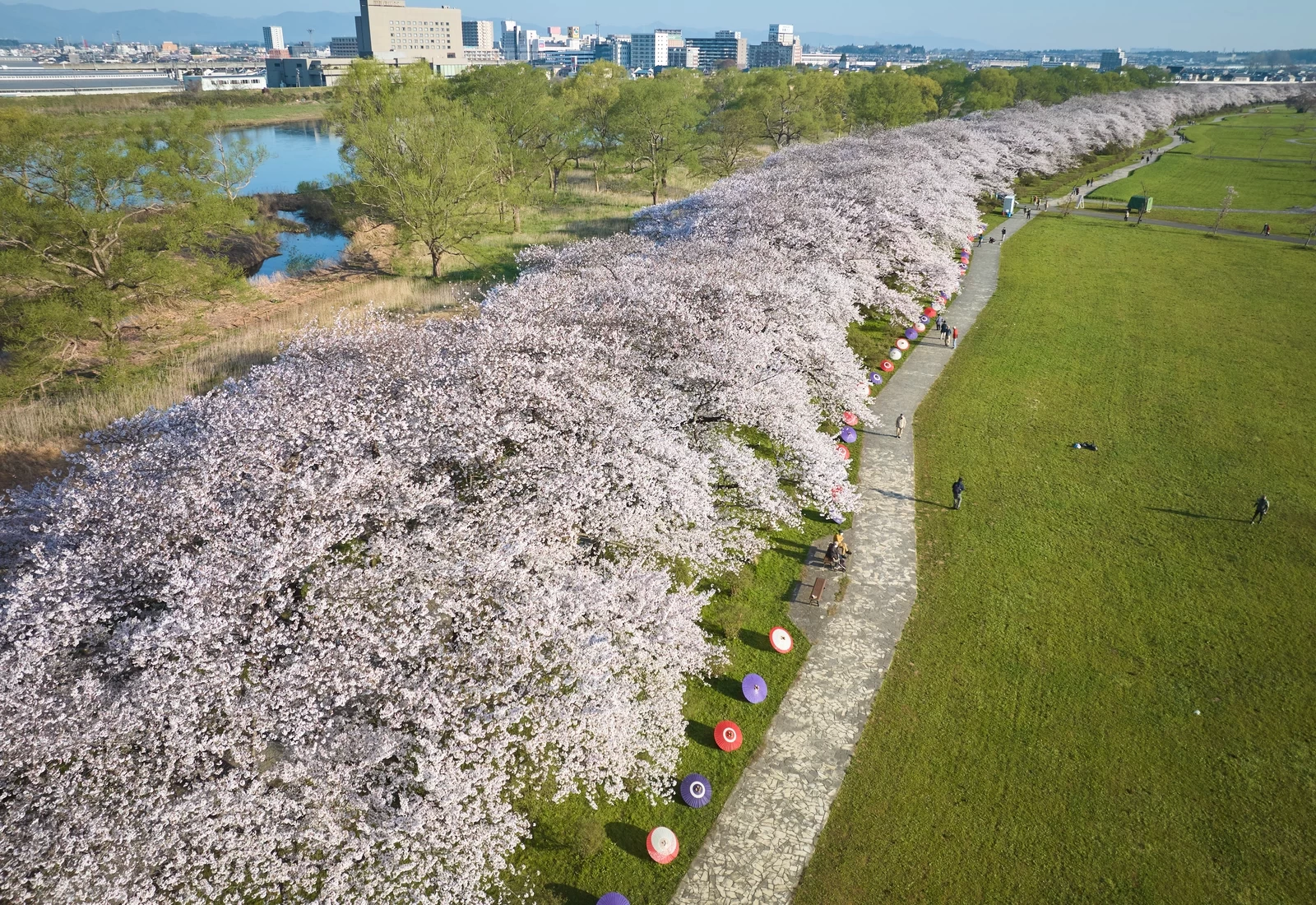 首先,不妨沿著綿延約2公里的櫻花林蔭道,從一端慢慢散步到另一端。迎著從北上川吹來的舒適微風,時而停下腳步拍照留念,都是格外愜意的時光。
