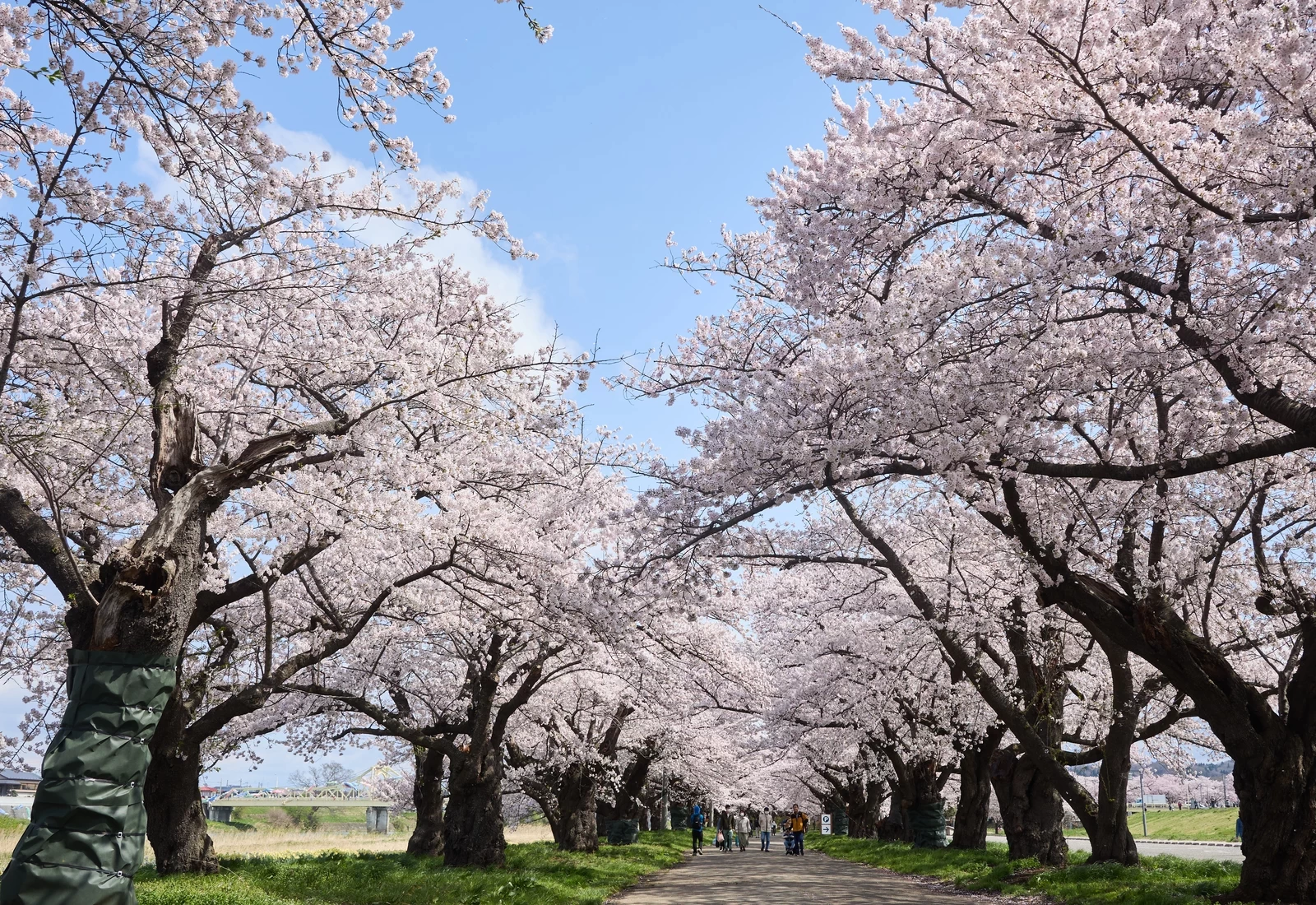 最大的看點,是沿著北上川綿延約2公里的「櫻花隧道」。樹齡超過100年的染井吉野櫻在頭頂交織成一片壯觀的櫻花天幕,氣勢令人讚嘆不已。