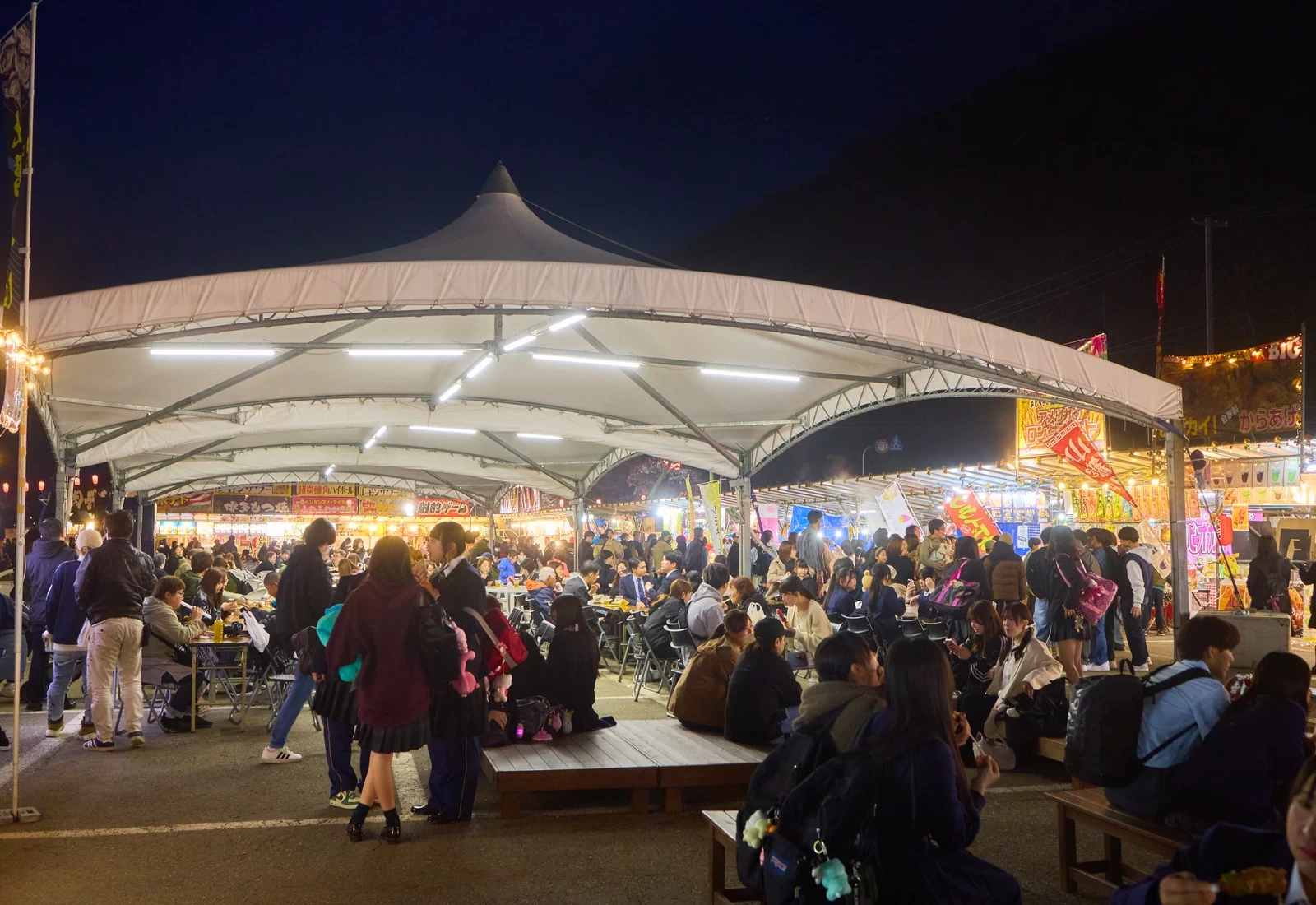 每年約有20~25家攤位進駐,廚房餐車廣場也會有約10~15台餐車參與,可說是一場名副其實的屋台美食盛會。邊賞櫻邊享用美食,讓人能盡情沉浸在春日氛圍之中。除了炒麵、烤雞肉串等經典屋台美食外,還能品嚐到使用岩手縣食材製作的料理、當地名產,以及來自日本各地的特色美食,一同為賞櫻時光增添熱鬧氣氛。會場也設置了特設舞台,以週末為主安排各種活動,內容相當豐富。夜晚在欣賞點燈後的櫻花之餘,也很適合在此享用晚餐。