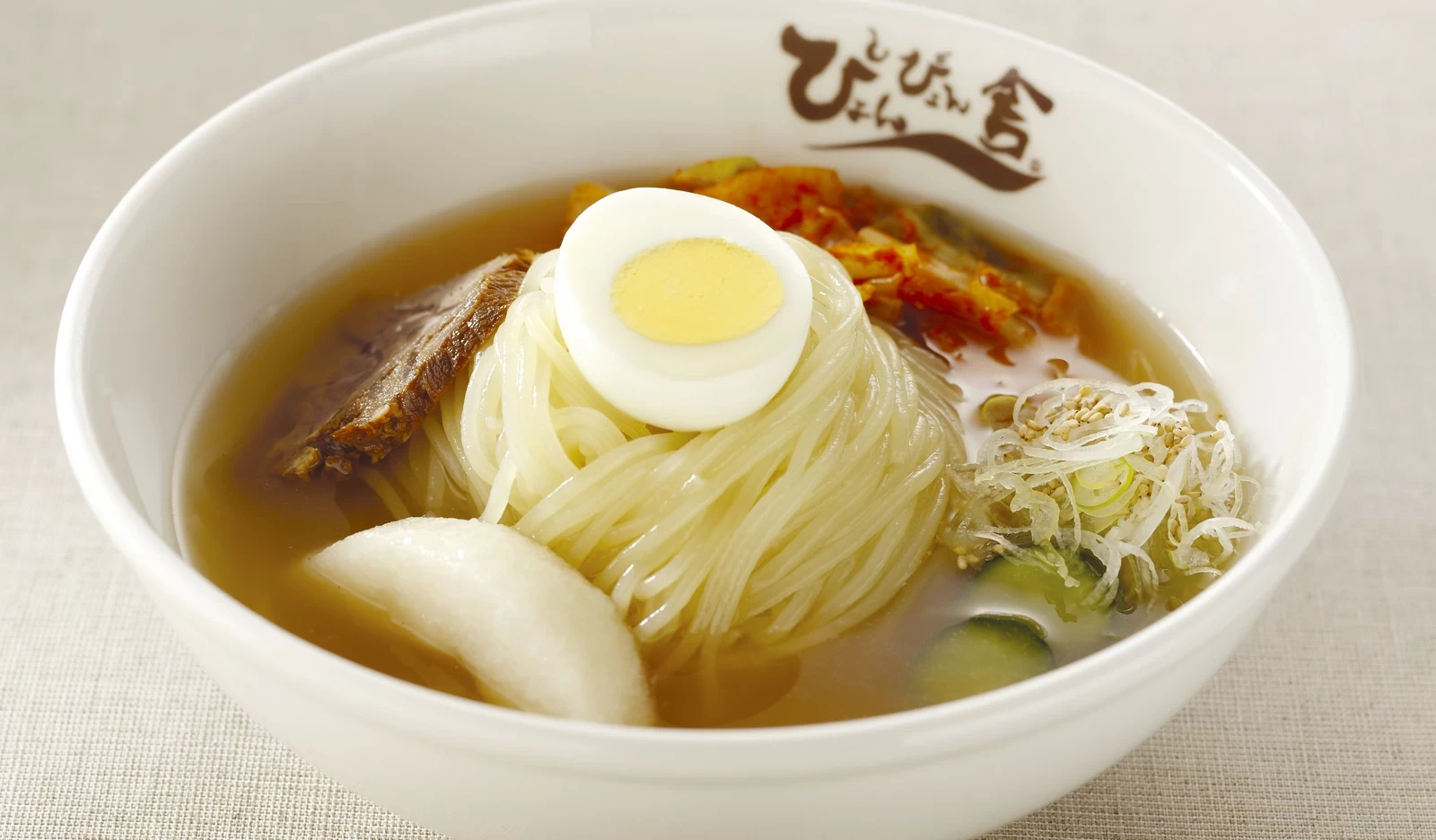 麵條、湯頭與泡菜三者交織出的和諧風味,正是盛岡冷麵最迷人的特色。除了泡菜之外,還會搭配牛肉叉燒、水煮蛋,以及以三杯醋醃製的小黃瓜,每一樣都與麵條與湯頭相當契合。只要品嚐一口,便能深深著迷於岩手的在地美味。