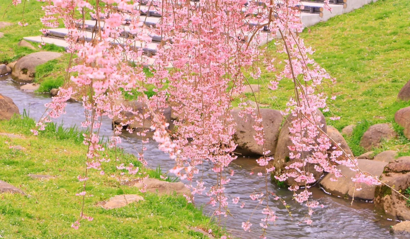 園內以河岸散步道為主軸,並設有寬廣的草地廣場與休息屋等室內設施,整體空間開闊、動線悠閒,非常適合慢慢散步賞櫻。