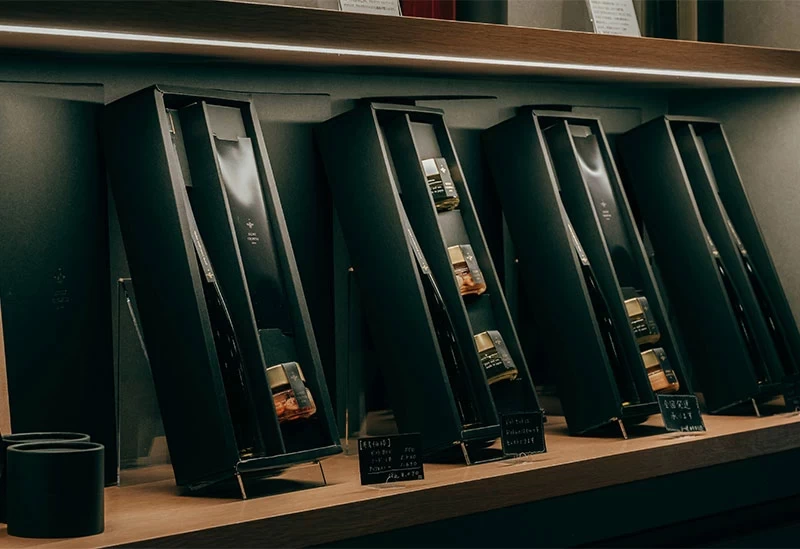 店內販售多款酒品,從平易近人的純米吟釀,到香氣華麗、風味層次豐富的純米大吟釀「銀嶺月山」皆可選購。特別值得一提的是,以山田錦精米至35%,並使用月山伏流水精心釀造的年度極品大吟釀,經過嚴格控溫管理,在酒藏的低溫貯藏庫中熟成長達12年,風味深邃、香氣高雅,是酒藏引以為傲的逸品。