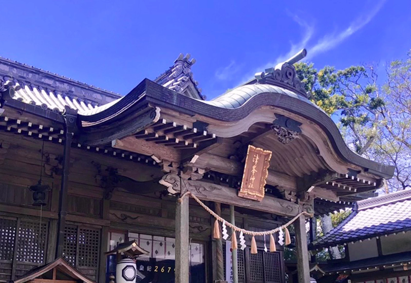 「津峯神社」供奉著延命長壽之神——「賀志波比賣大神」,因「一天拯救一人性命」的靈驗傳說而廣為人知。神社座落於津峯山山頂,而山腰間仍留有因海水侵蝕土石所形成的海蝕洞,展現大自然的獨特地貌。