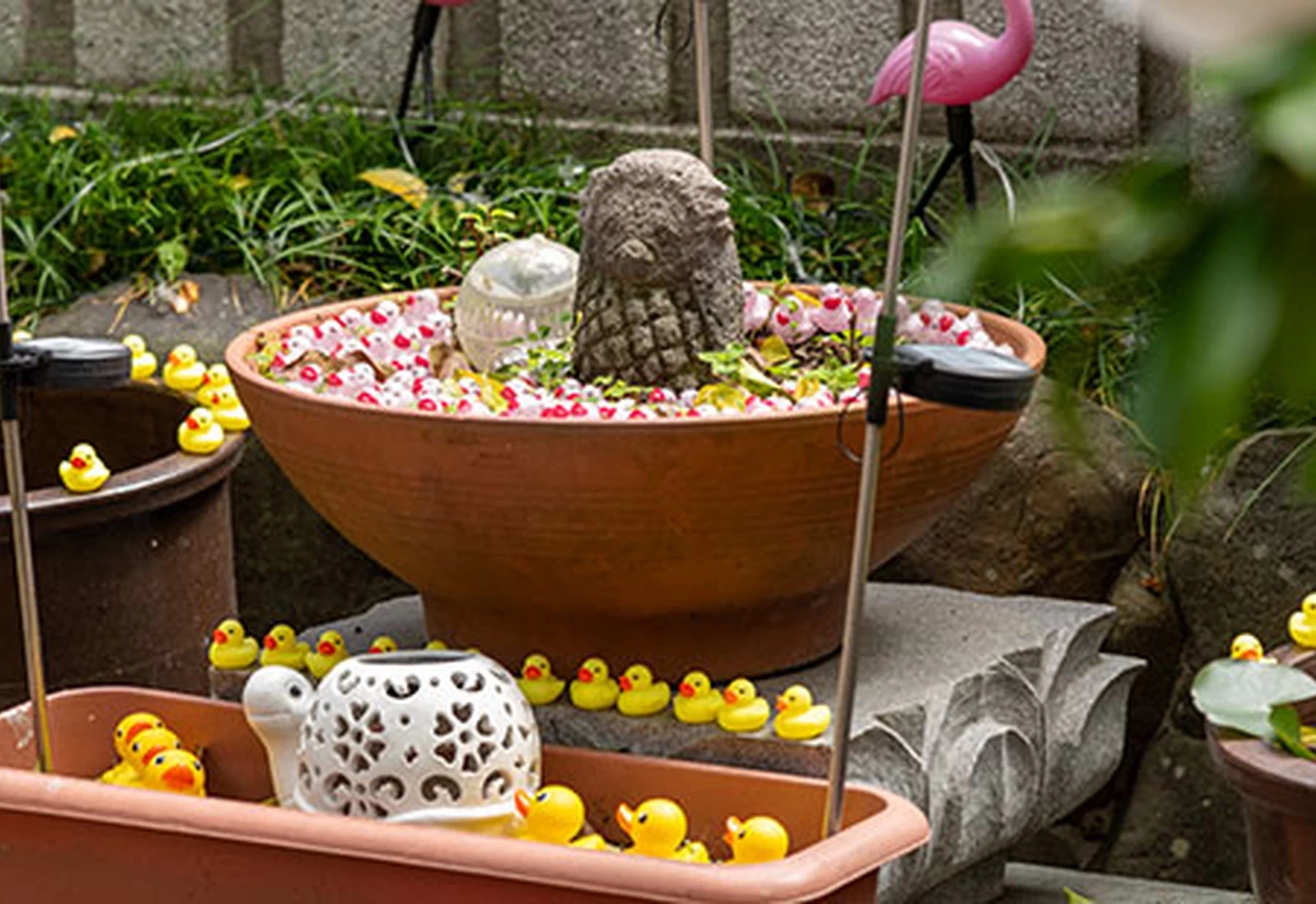 境內四季變換的風景同樣迷人:春天盛放的繡球花、夏季如拱門般綻放的向日葵、秋天以紅葉妝點的花手水、冬日枯木覆上白雪的靜美景致……繽紛的季節色彩為參拜旅程增添柔和溫暖的氣息。