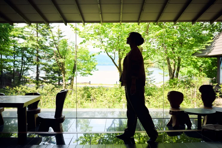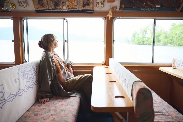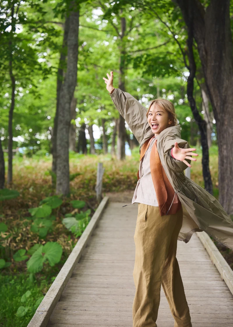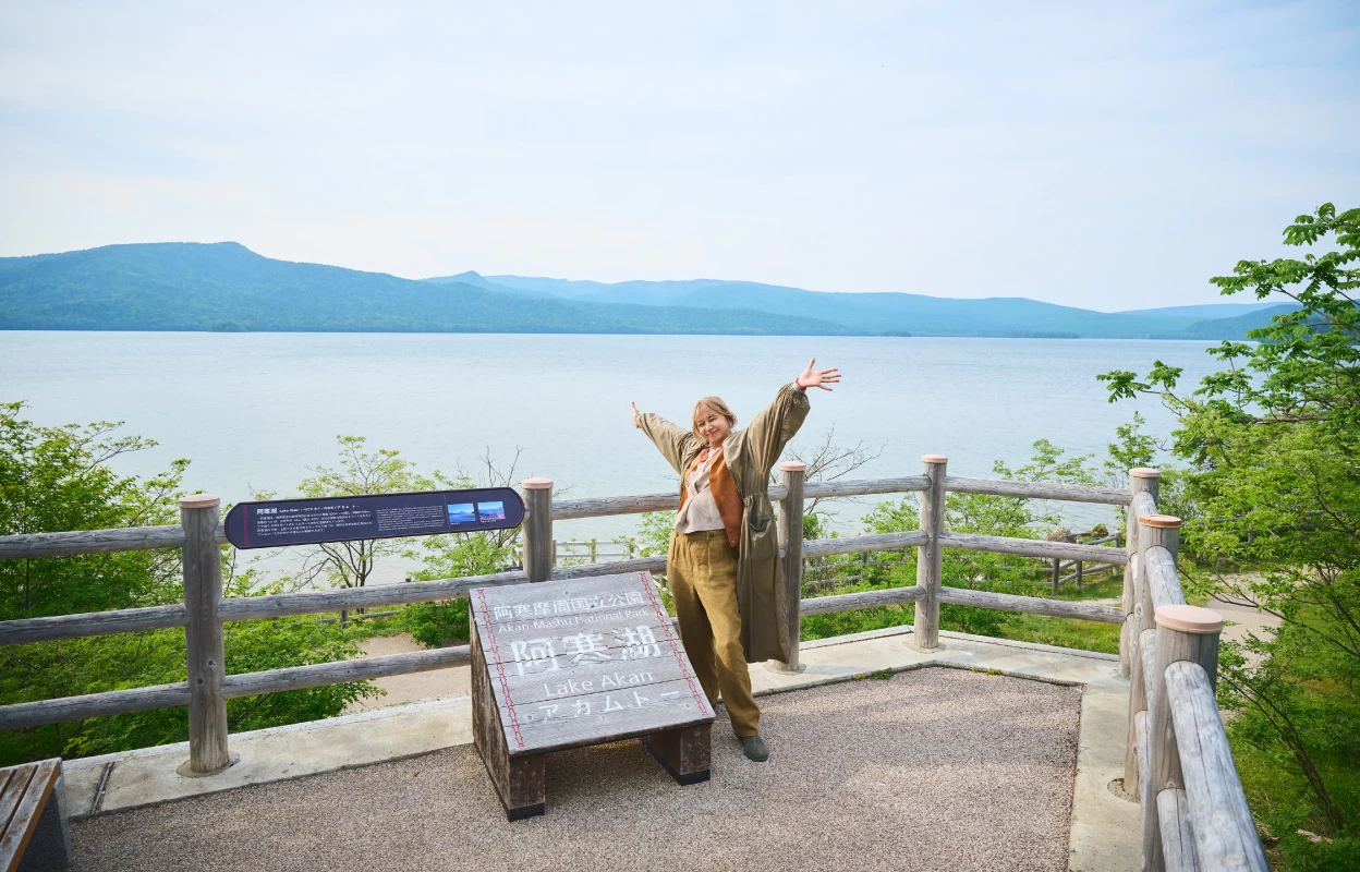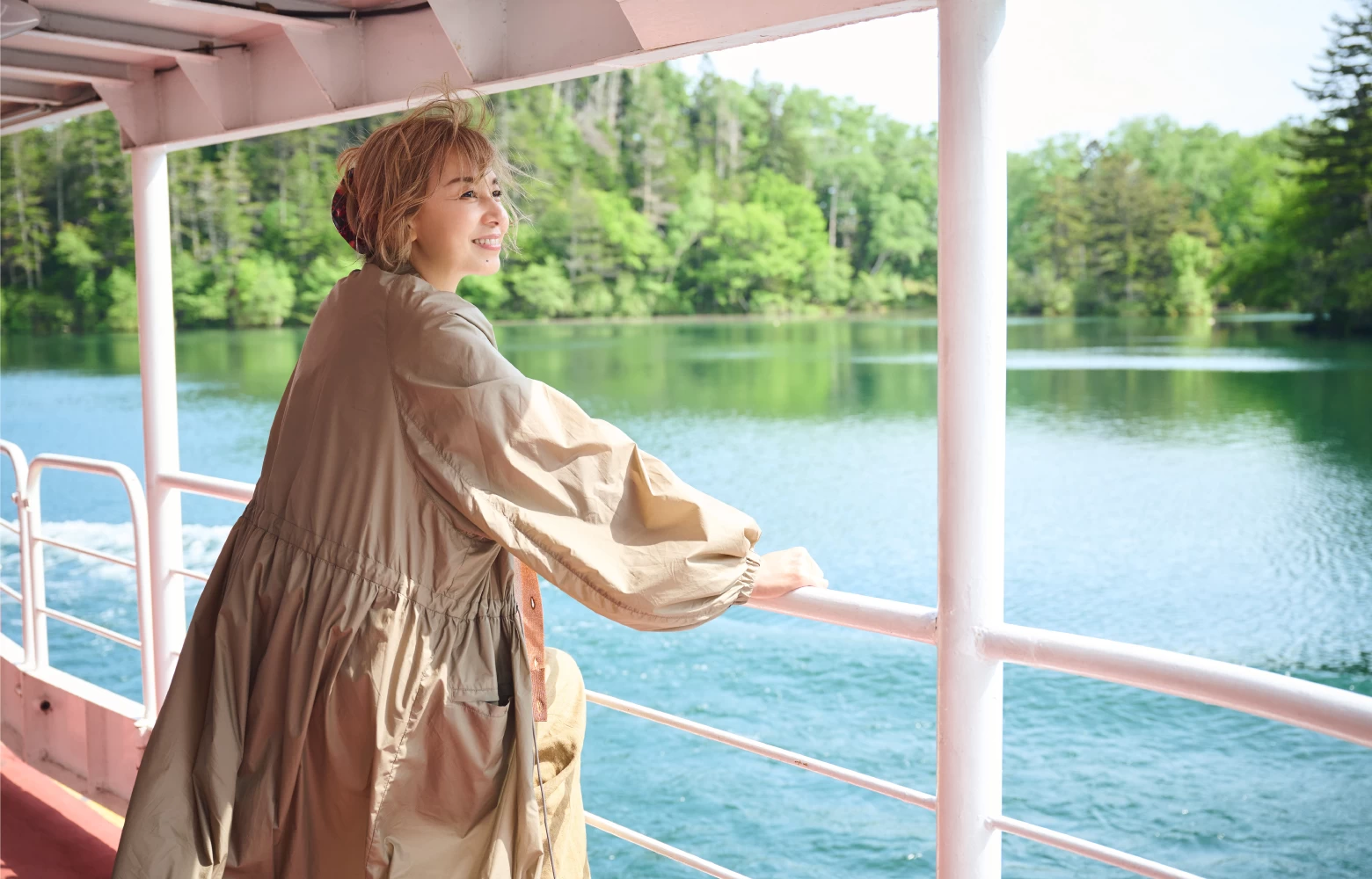 從湖畔眺望固然迷人,但若想更深入感受阿寒湖之美,絕對推薦搭乘遊覽船。每小時一班,約需85分鐘即可環湖一周。登上雙層甲板,壯麗的雌阿寒岳便矗立於眼前,讓人為大自然的氣勢所震撼。隨著船身逐漸駛向湖的深處,便能抵達景勝地「瀑口」。兩側森林倒映在湖面上,彷彿整個人被自然溫柔包圍。「風真舒服呢。」山口小姐露出笑容地說著,一邊感受著湖上掠過的微風,一邊悠然欣賞那只有乘船才能看到的絕景。