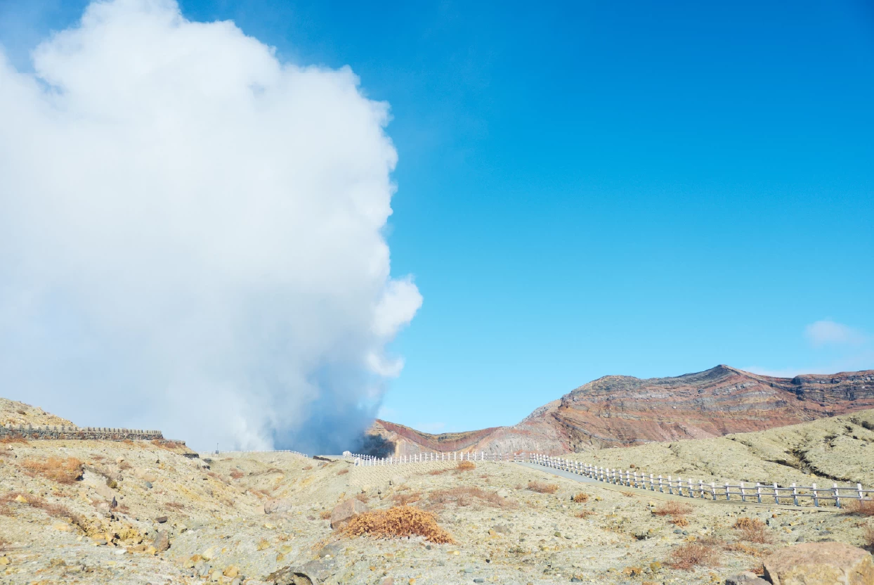 這裡的自然力量真的非常強大。活火山讓我真切感受到它依然鮮活地跳動著,那股能量令我深受震撼。光用「自然資源豐富」這句話完全不足以形容,那種強韌而莊嚴肅穆的氛圍,在親眼目睹火山口不斷冒出白煙的瞬間,內心充滿了感動。聽說自古以來火山口本身就是聖地與信仰的對象,我非常喜歡探索這類歷史文化,所以感到格外興奮。火口附近約一公里處還有一座「奧宮」(阿蘇山上神社),下次我一定要找機會去好好參拜。至於砂千里之濱,風景荒涼得簡直不像在日本,當下我驚訝到只能不斷脫口而出:「這到底是哪裡?」