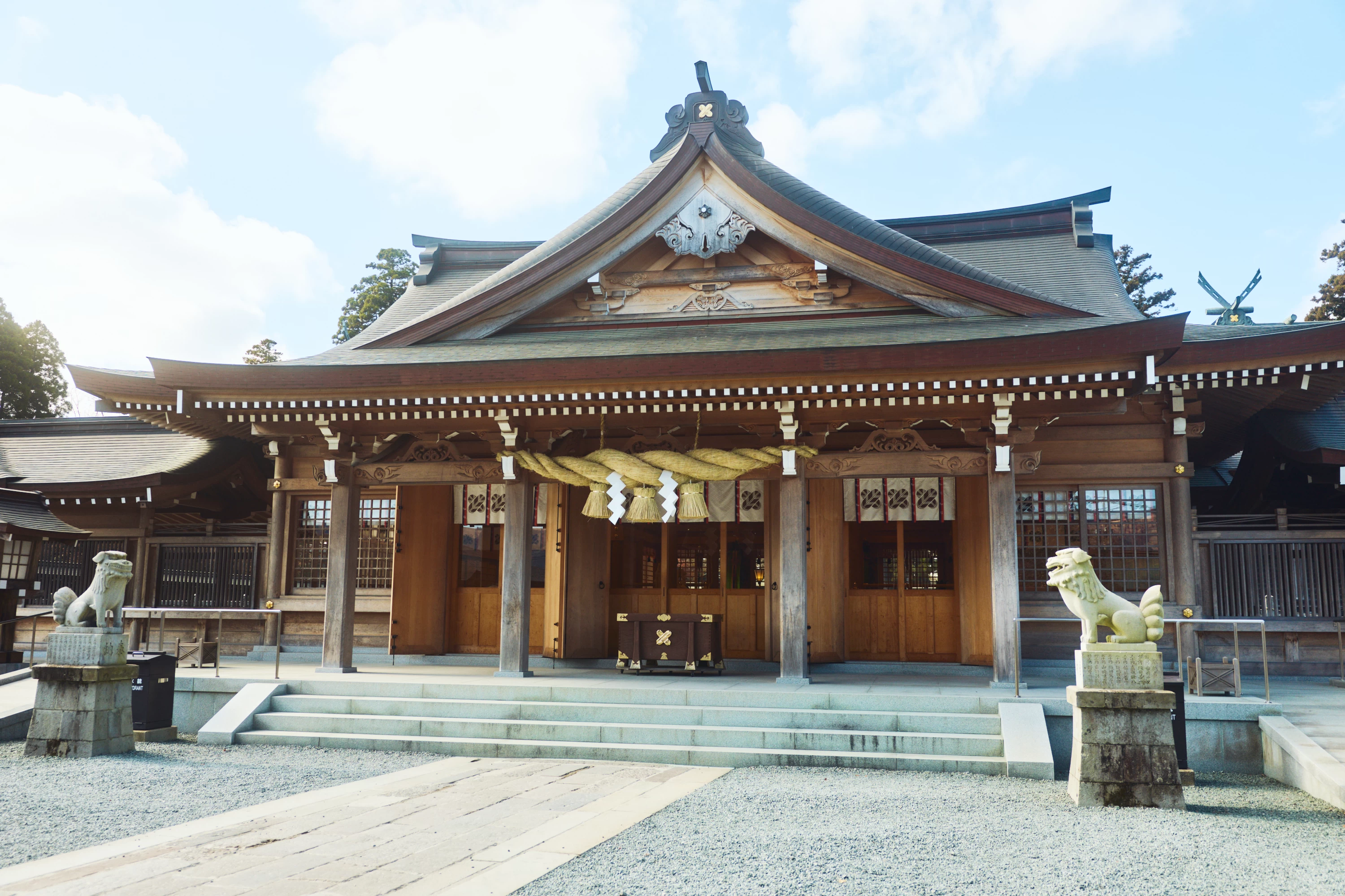 首先造訪的是擁有約 2300 年歷史的阿蘇神社。這裡以阿蘇開拓之神「健磐龍命」為主祭神,合祀十二柱神明,是全國約 500 座阿蘇神社的總本社。看點之一是被列為「日本三大樓門」之一的雙層屋頂樓門。雖在熊本地震中遭受嚴重損害,但在地方居民的支持下,於令和 5 年(2023 年)完成修復。由於原始設計圖未留存,工匠們一邊摸索、一邊重組,才得以重現昔日風貌。參拜之後,不妨在充滿樂趣的門前町散策、邊走邊吃、購物。這裡是一條相對於樓門平行延伸的「橫參道」,在全國也相當少見,亦有一說認為,參道其實是朝向火口方向延伸而去。