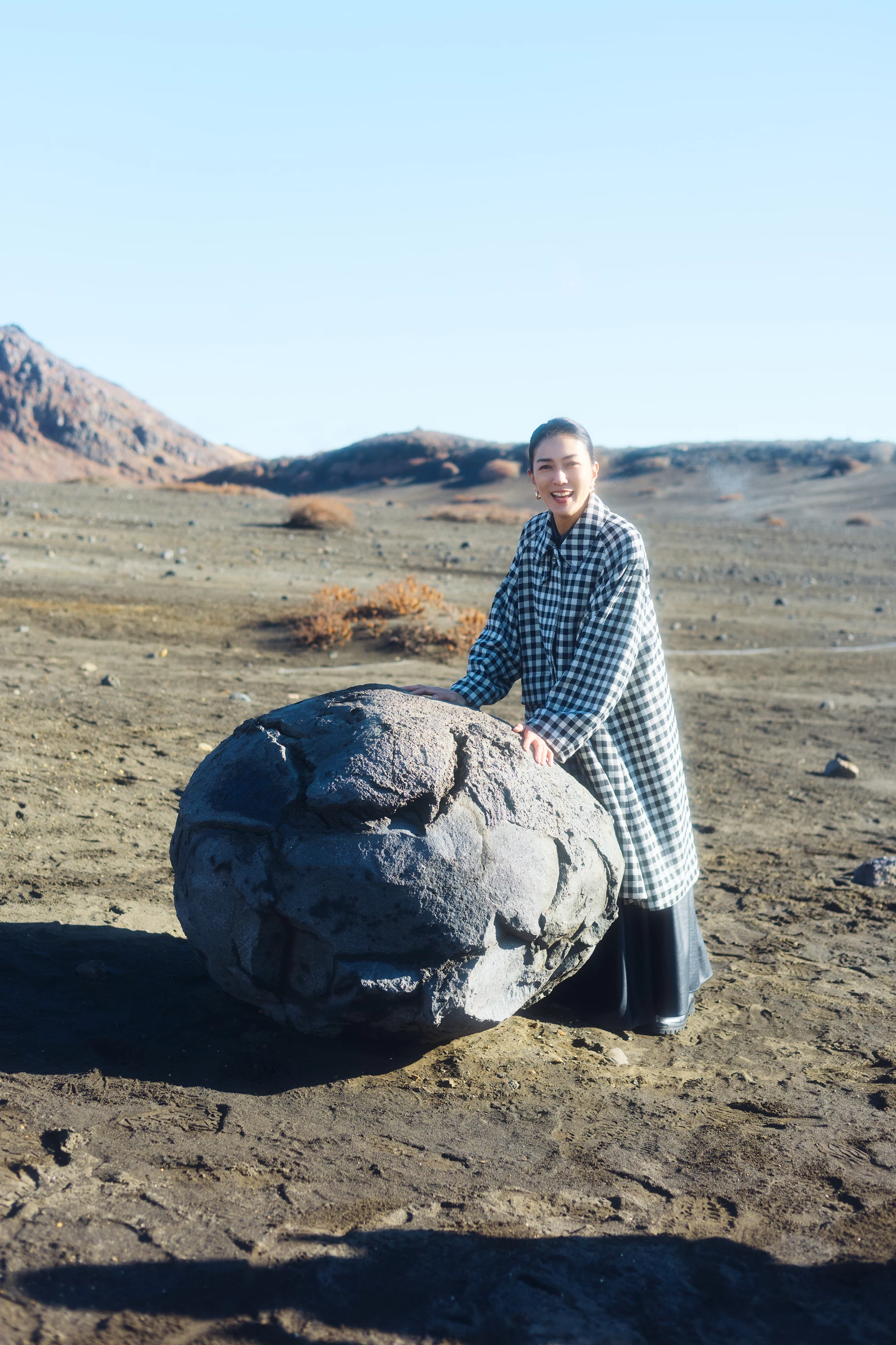 阿蘇山是一個總稱,涵蓋以高岳、中岳等連綿而成的阿蘇五岳,以及位於破火山口邊緣的外輪山等整片山域。由於過去曾有前往火口參拜、締結婚姻誓約的風俗,因此整座阿蘇山被視為「戀人聖地」。這次,板谷小姐造訪了能近距離感受火山脈動的中岳火口,以及火山灰堆積、宛如異世界般景觀展開的砂千里濱。她感動地表示:「這真的是不像日本的神奇景色。依風向不同有時會限制進入,能親眼看到真的太好了。」