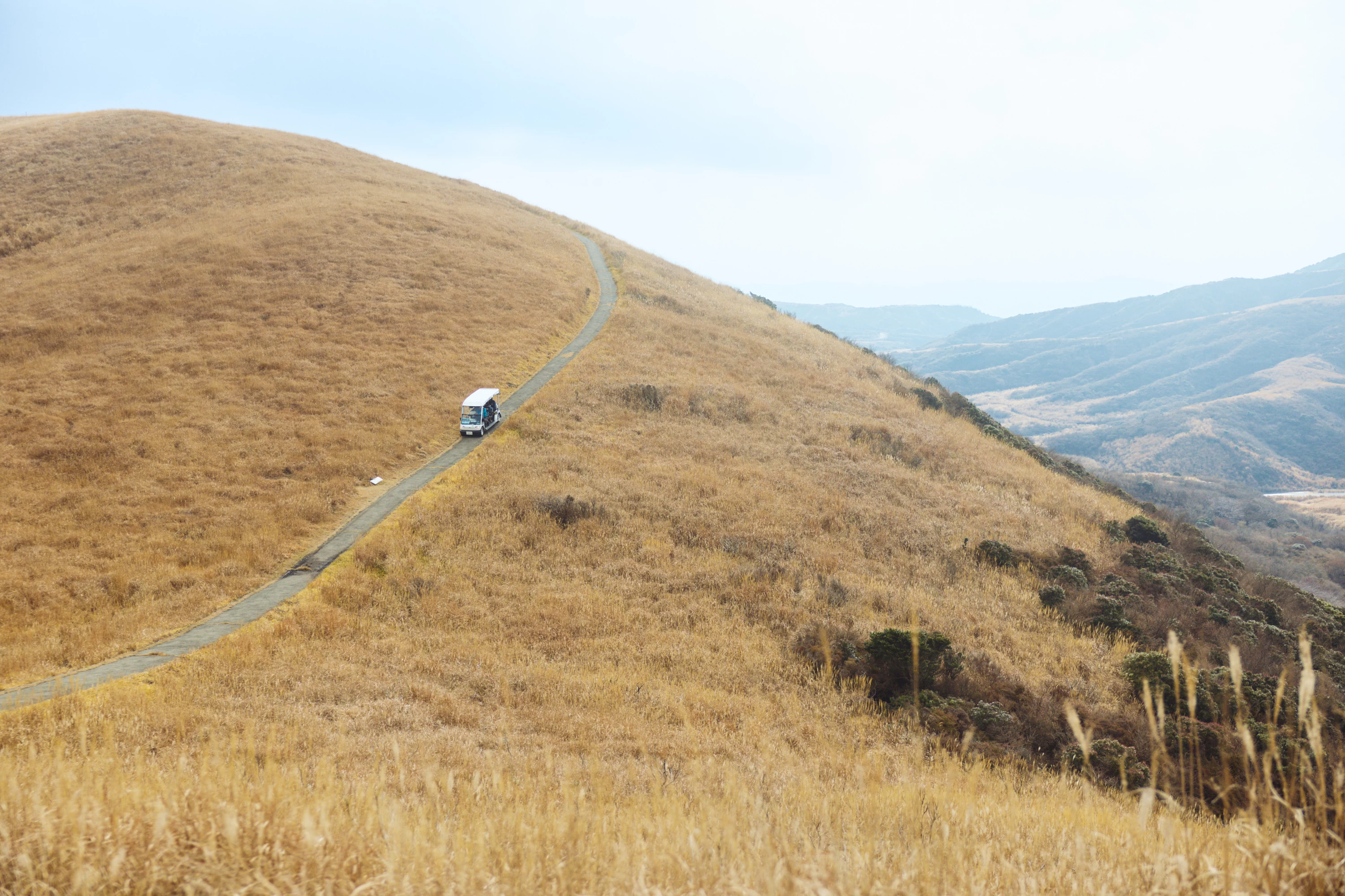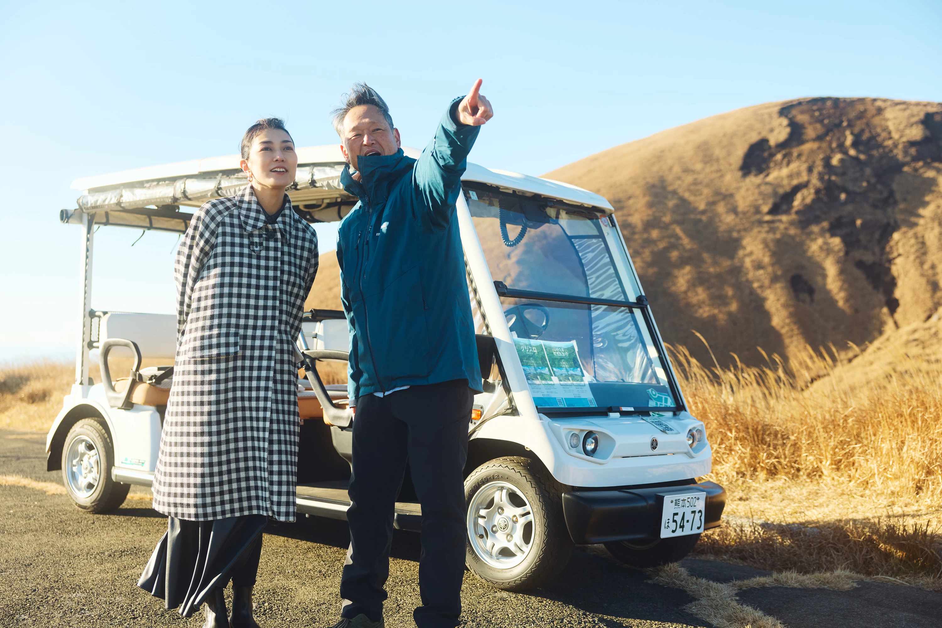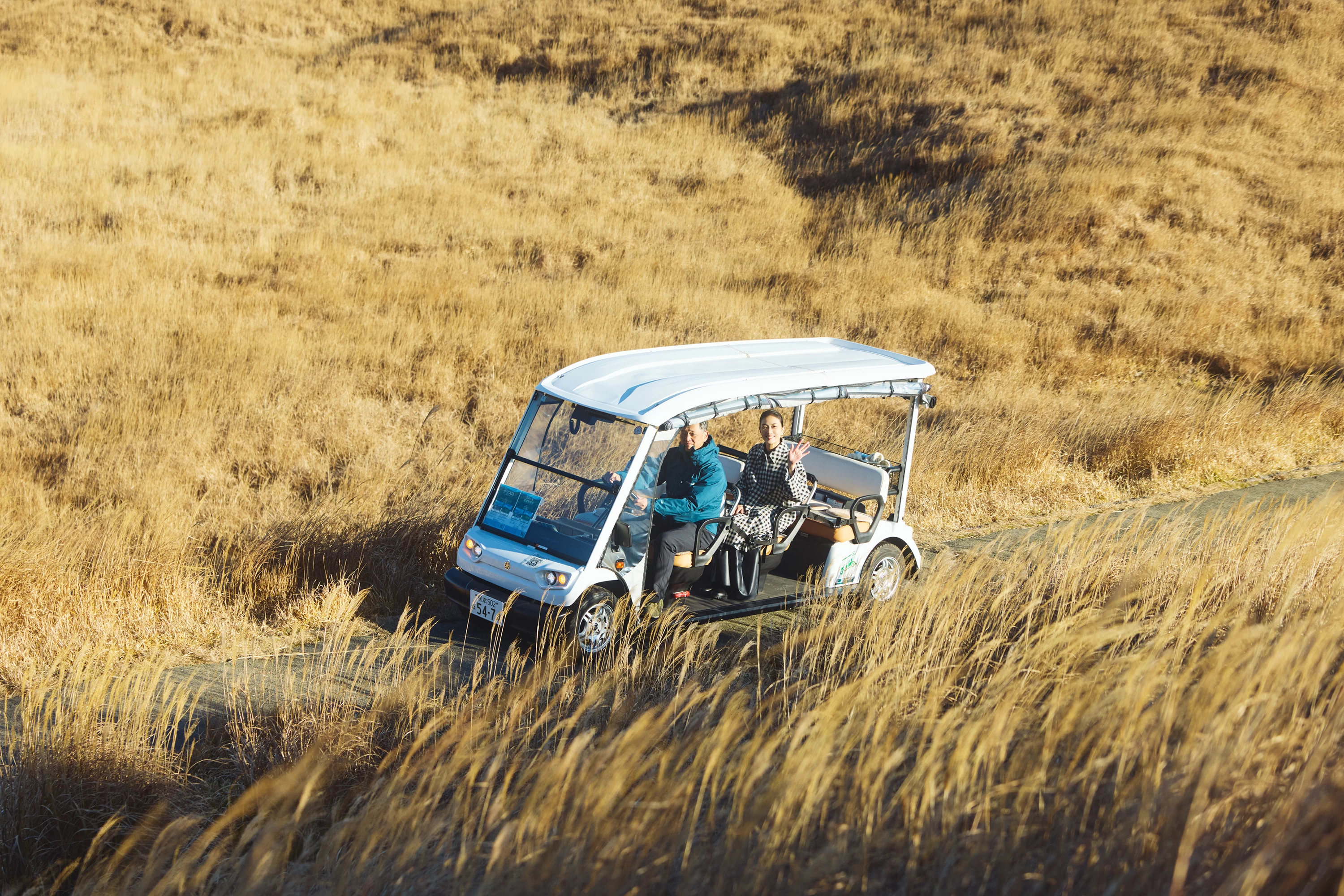 位於海拔約 1,100 公尺、阿蘇五岳之一烏帽子岳半山腰的草千里濱一帶,可搭乘電動小型車舒適地環遊的「電動觀光車園區」。行程分為 30 分鐘與 1 小時兩種路線,即使對體力沒有自信,也能一邊感受微風、一邊欣賞壯麗景色。司機兼導覽的解說輕鬆有趣,讓人覺得乘車時間一眨眼就過去了。