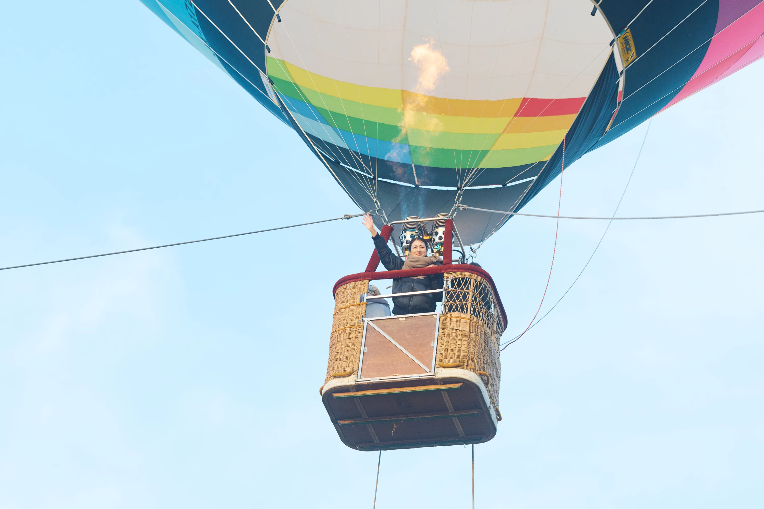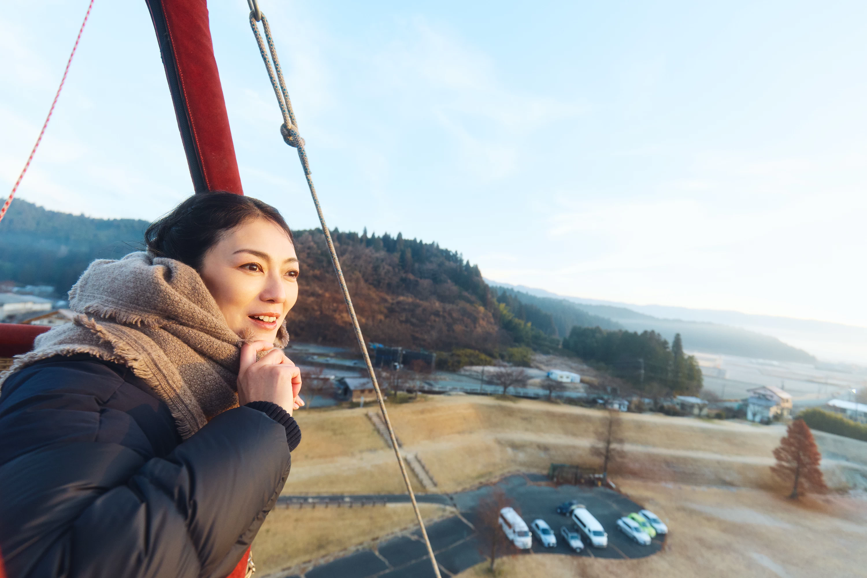帶著在大觀峰的興奮餘韻,接著體驗熱氣球吧。提供多樣戶外活動的「阿蘇 Nature Land」,會在大氣最為穩定的清晨舉辦熱氣球體驗。搭乘以繩索固定的熱氣球,最高可上升至離地約 30~40 公尺,在清新爽朗的晨間空氣中來一場空中漫步。從空中俯瞰被朝霞染色的阿蘇五岳,條件合適時甚至能看到雲海。尤其在冬季,朝日格外迷人,特別推薦。搭乘時間約 5 分鐘,不妨在早餐前安排體驗,為一天揭開美好的序幕。
