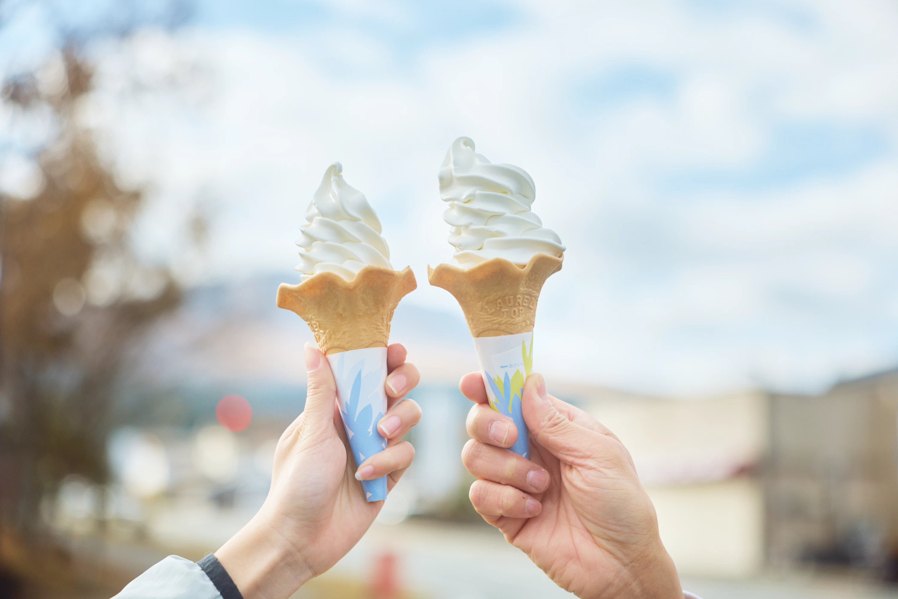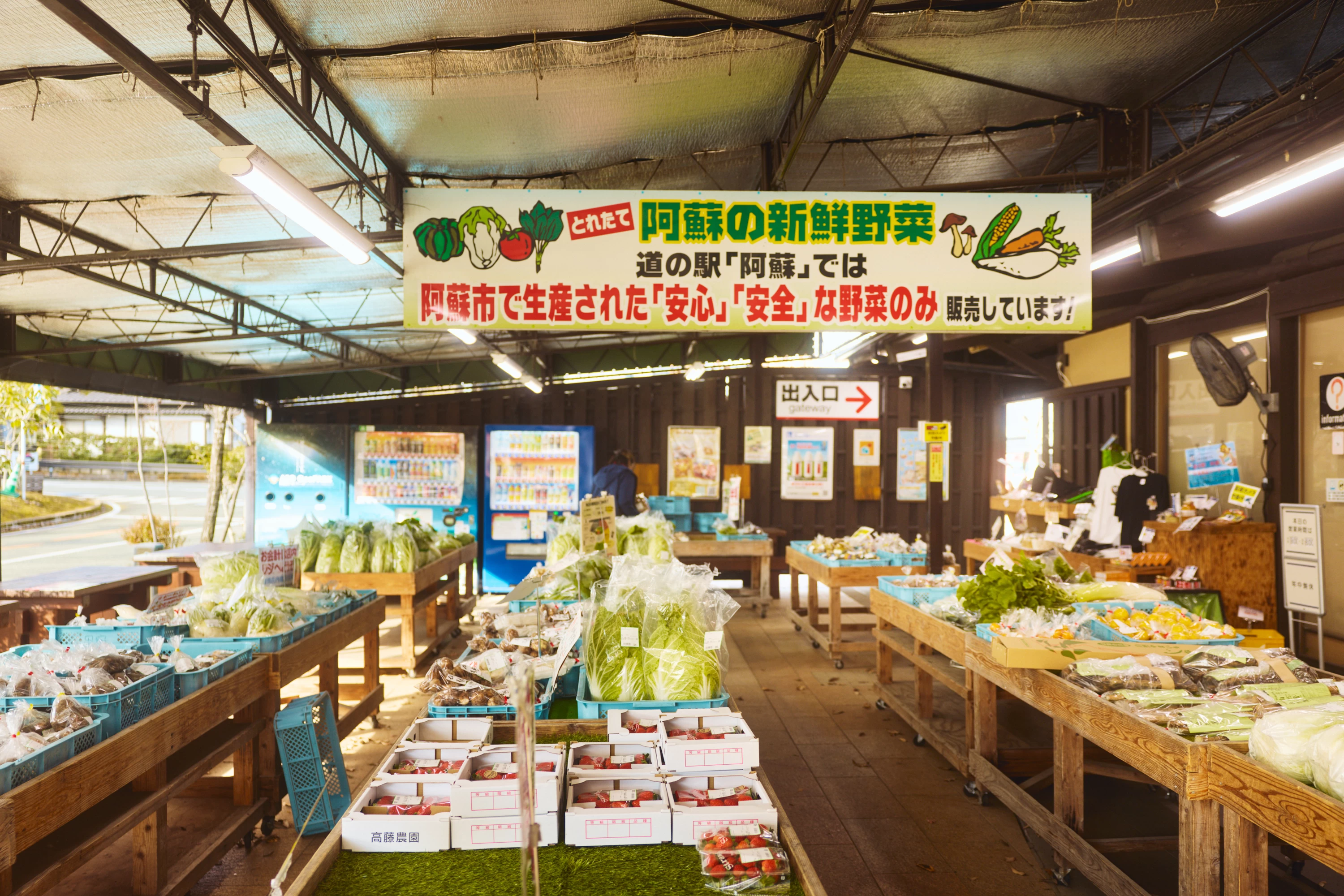 旅程的最後一站,是位於JR阿蘇車站旁、正對著阿蘇五岳的道之驛 阿蘇,來這裡挑選伴手禮吧。館內陳列著當地採收的當季蔬菜與水果,還有精肉、乳製品等各式阿蘇特產。此外,現場還販售使用赤牛製作的手工便當,以及由當地高中生參與研發的特色便當。甜點選擇同樣豐富,霜淇淋則來自兩座牧場、共三種口味。來自竹原牧場的霜淇淋以濃郁奶香為特色;阿部牧場則以清爽柔和的甜味聞名,其中口感清新的優格霜淇淋也相當受歡迎。館內設有觀光諮詢櫃檯,專業人員可用日文、英文與中文提供旅遊資訊,讓旅程畫下安心又滿足的句點。