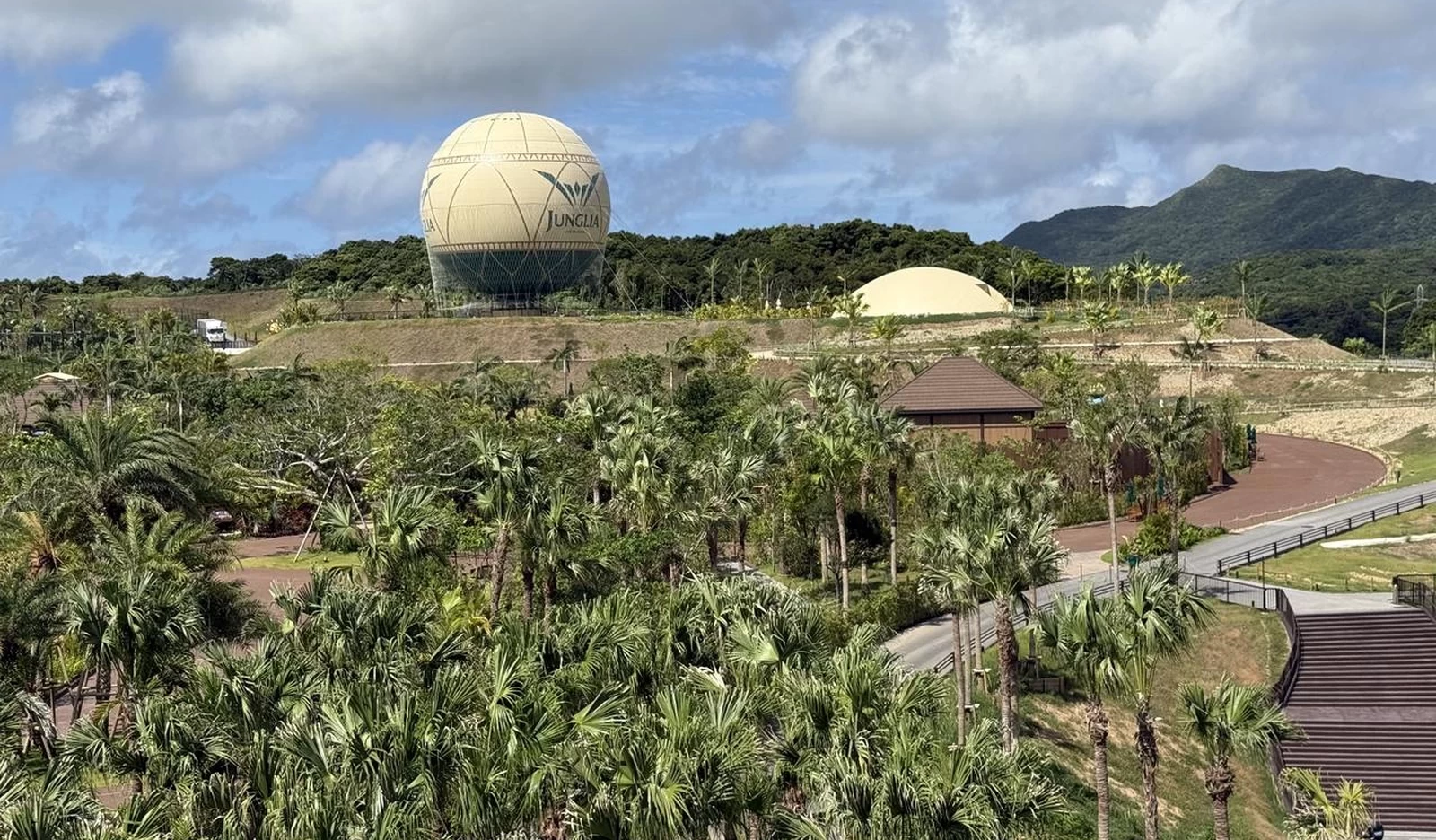 登上能一覽「JUNGLIA沖繩」全景的無邊露台(Infinity Terrace),首先映入眼簾的,是森林間突如出現的一顆巨大的熱氣球。那份壓倒性的存在感,讓人忍不住驚呼出聲。